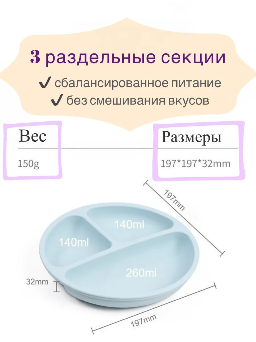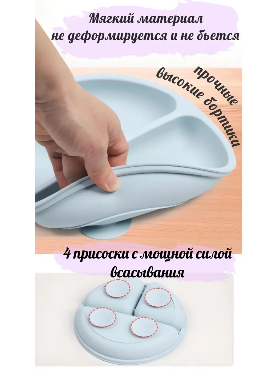 10 цен на Тарелка силиконовая секционная на присосках; детская посуда, первый прикорм