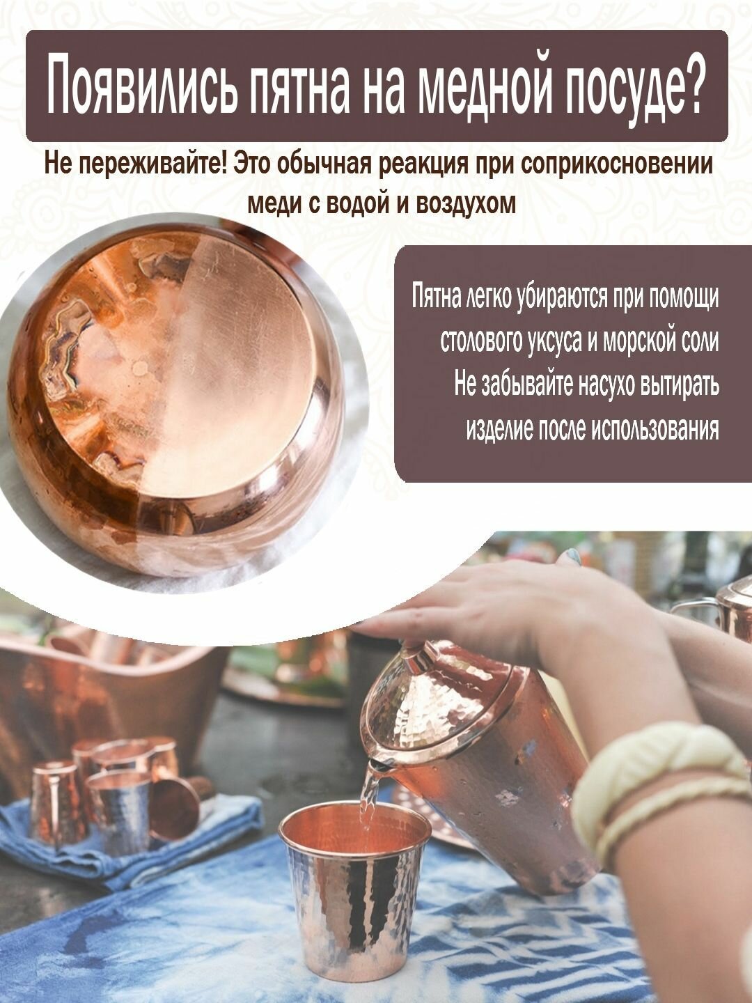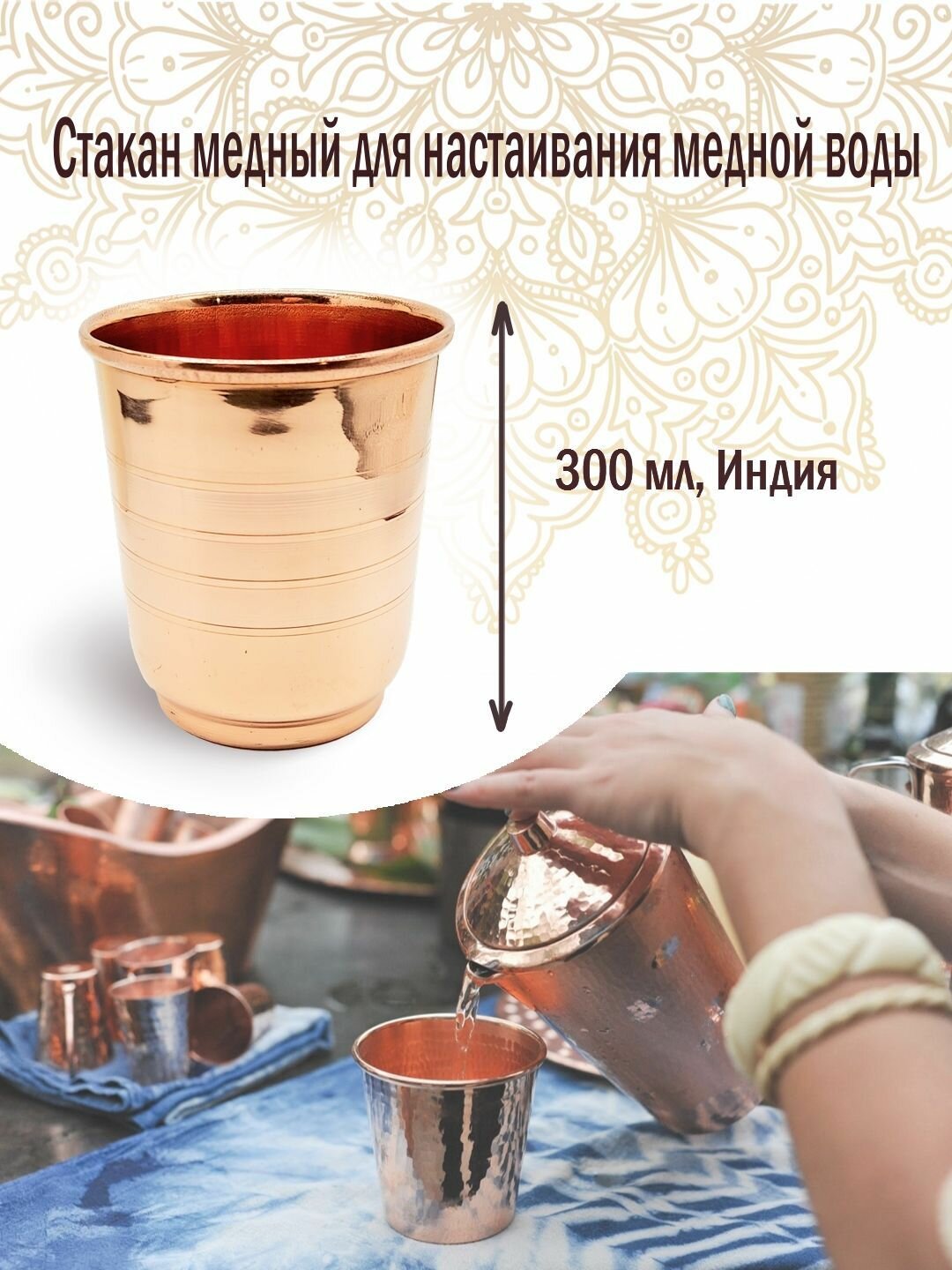 Стакан медный для настаивания медной воды, 300 мл. Индия информация: