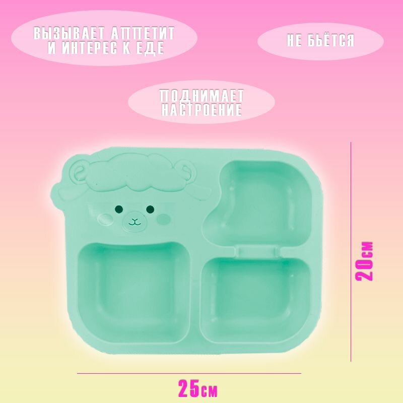 Тарелка секционная детская с приборами "Овечка" АМ-348 / Набор детской посуды, цвет зеленый информация: