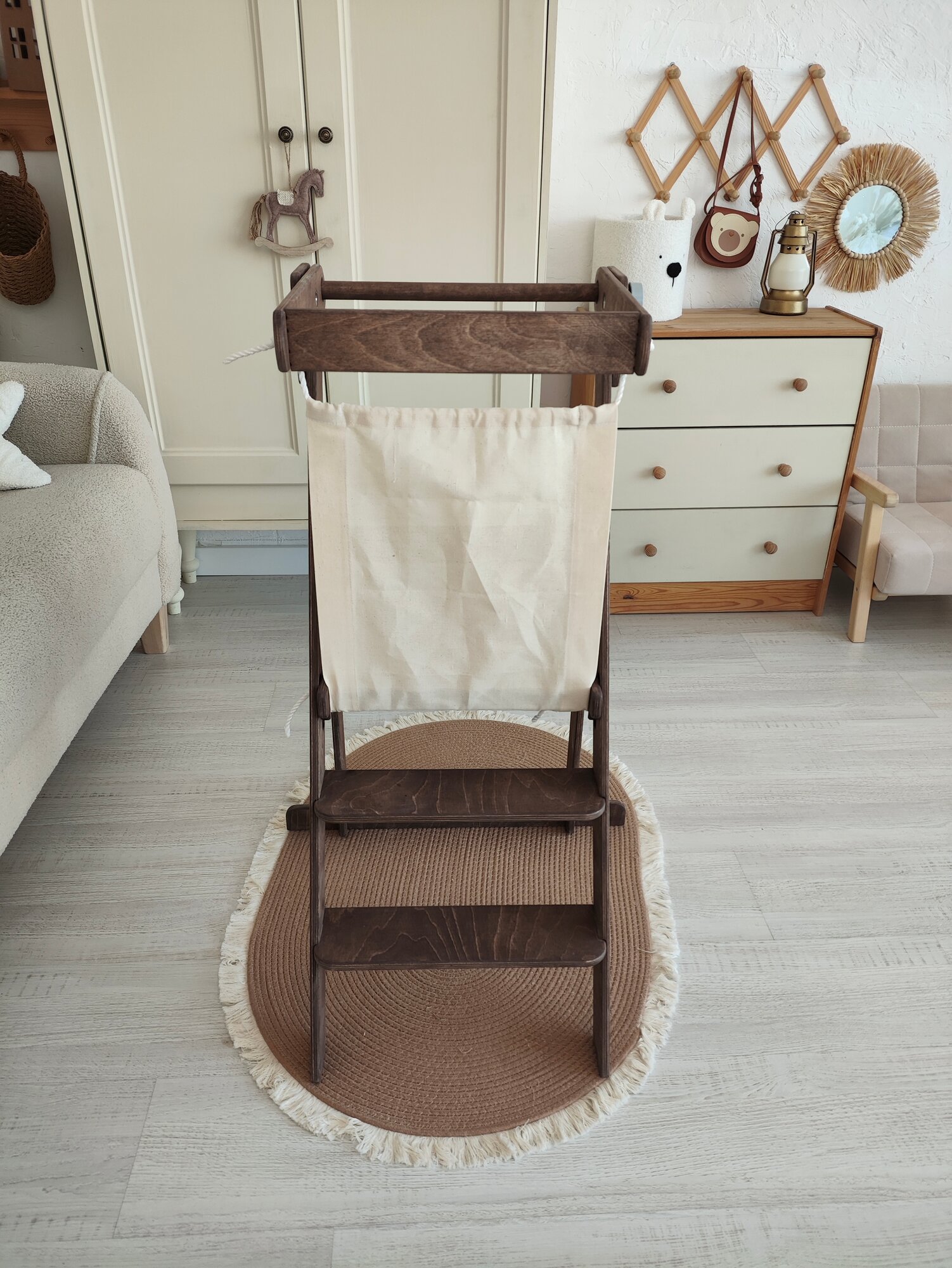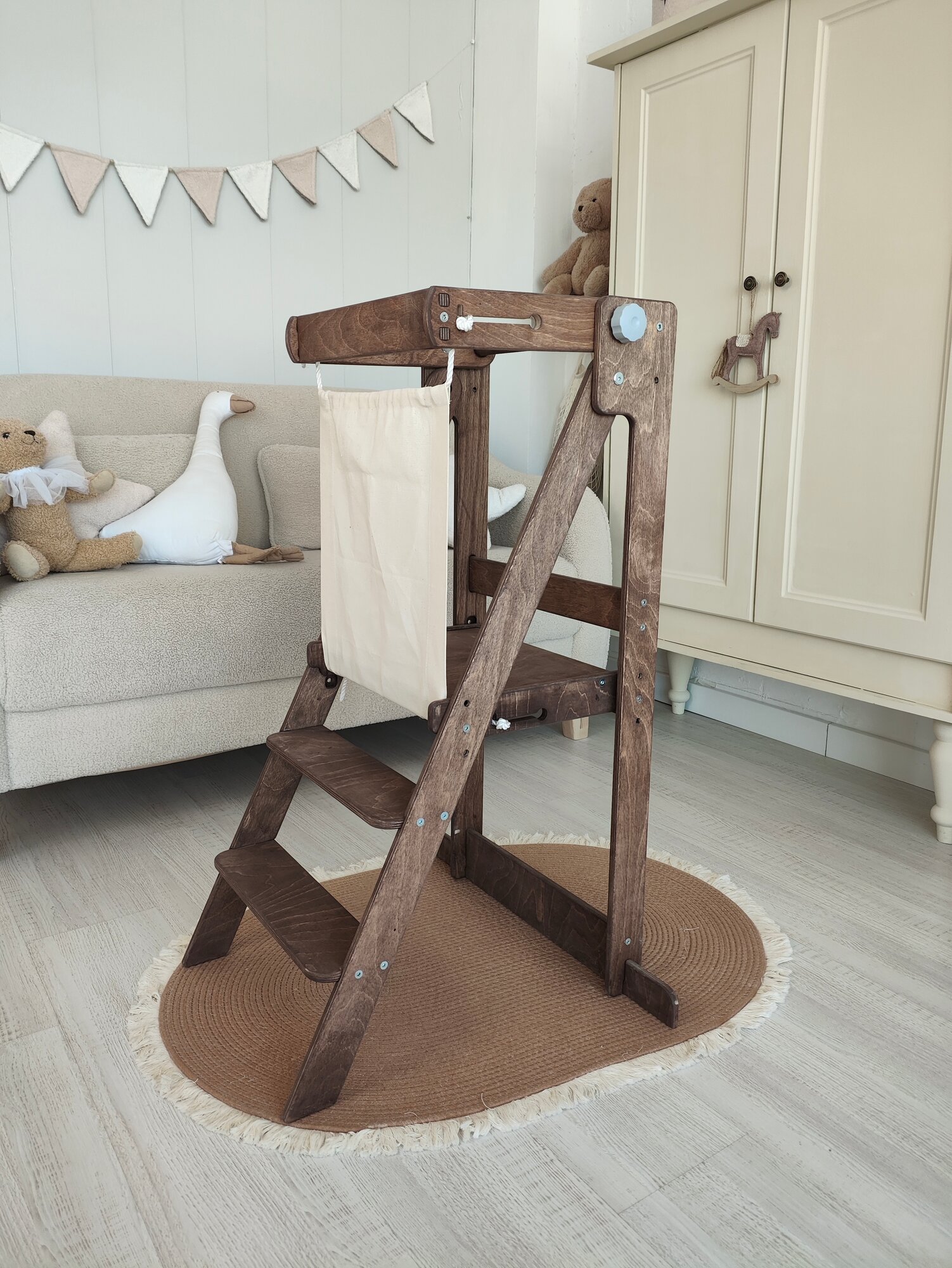 Башня помощника складная Монтессори, с защитной шторкой и ковриками
