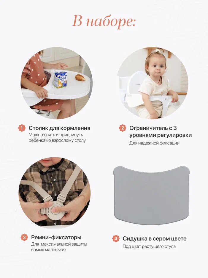 10 цен на Столик-ограничитель для кормления к растущему стулу Друг Кузя, серый
