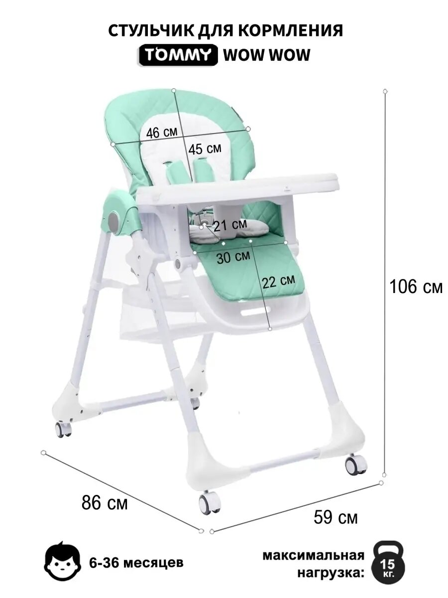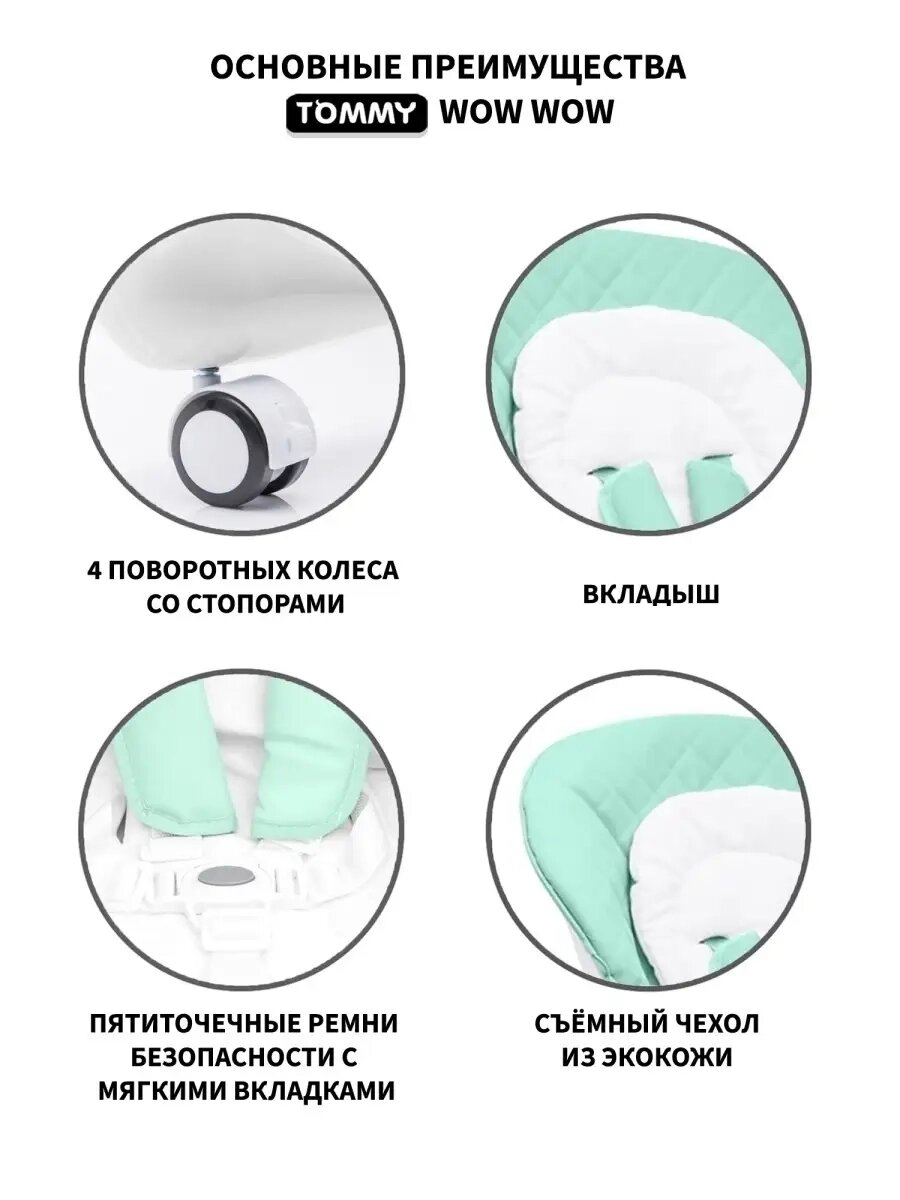 Стульчик для кормления шезлонг 2 в 1 (6-36 мес) Tommy Wow Wow мятный информация:
