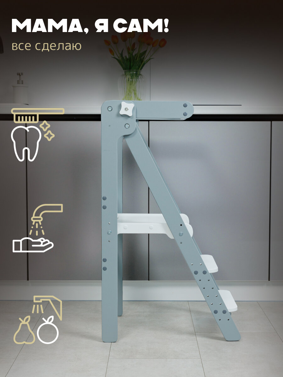 Отзывы на Башня помощника Монтессори "КОМФОРТ" + доска-ограничитель "Pappado", цвет серый + белый, 40х52х90 см