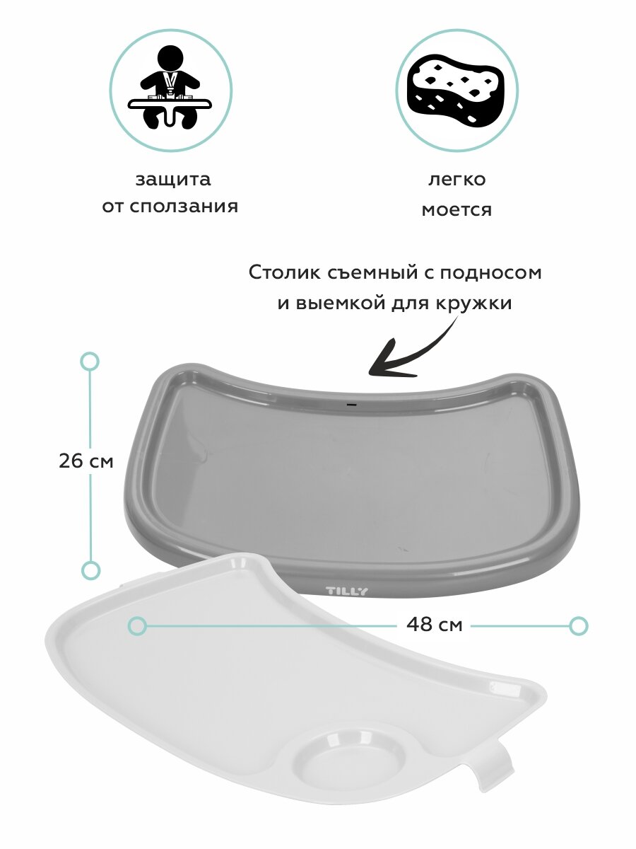 10 цен на Стульчик для кормления Baby Tilly Junior Light Grey, складной, 5-точечные ремни, светло-серый