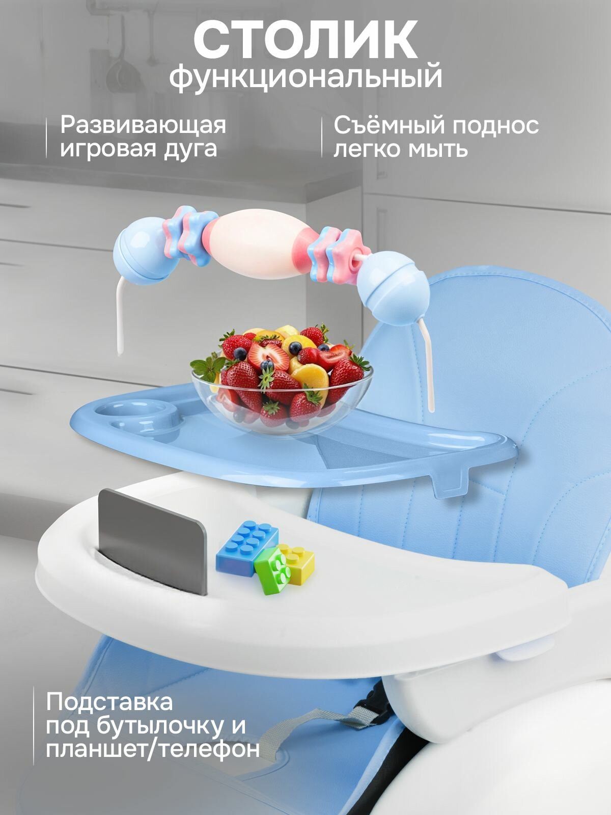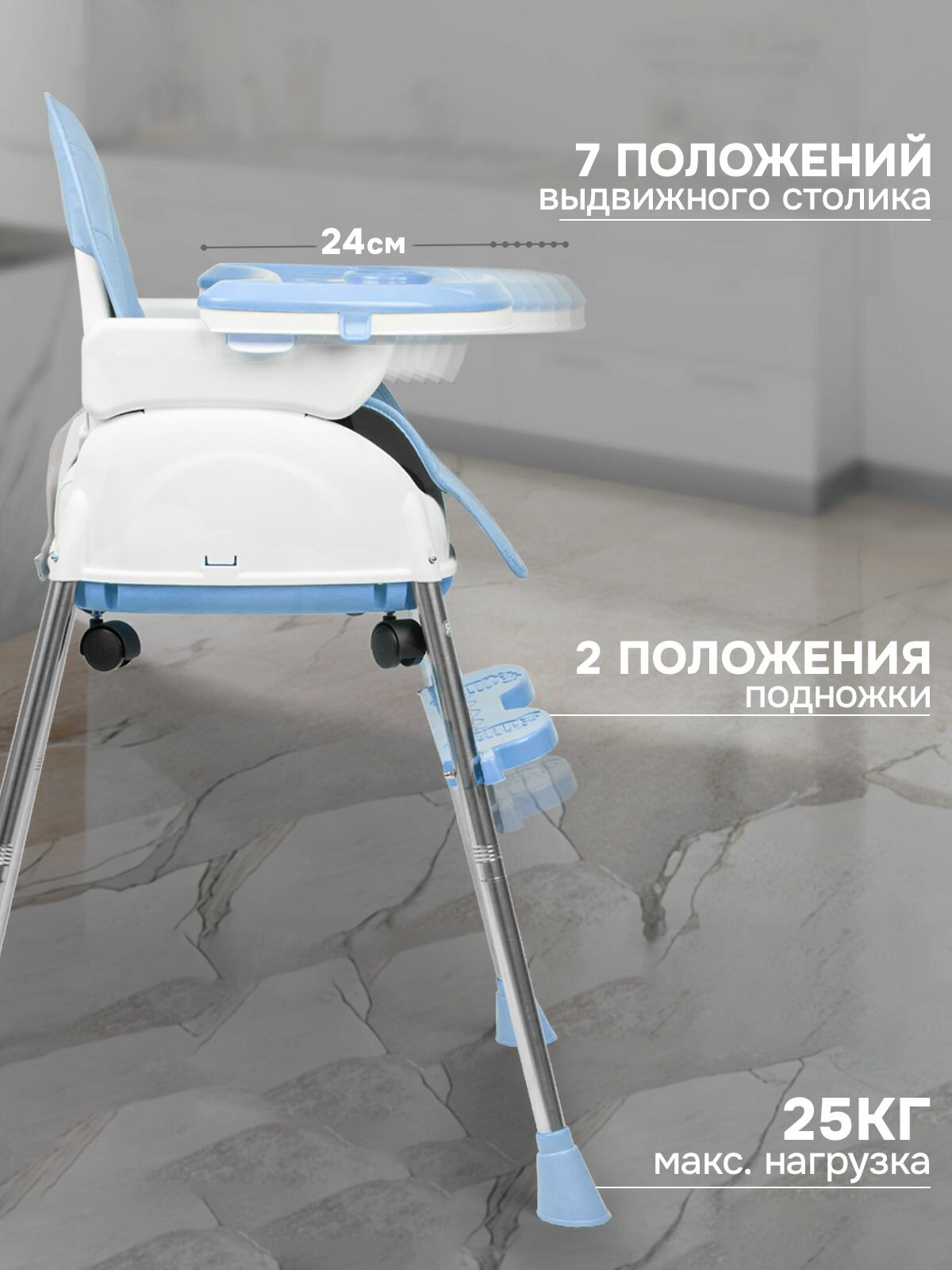 Детский складной стульчик для кормления, трансформируемый, голубой информация: