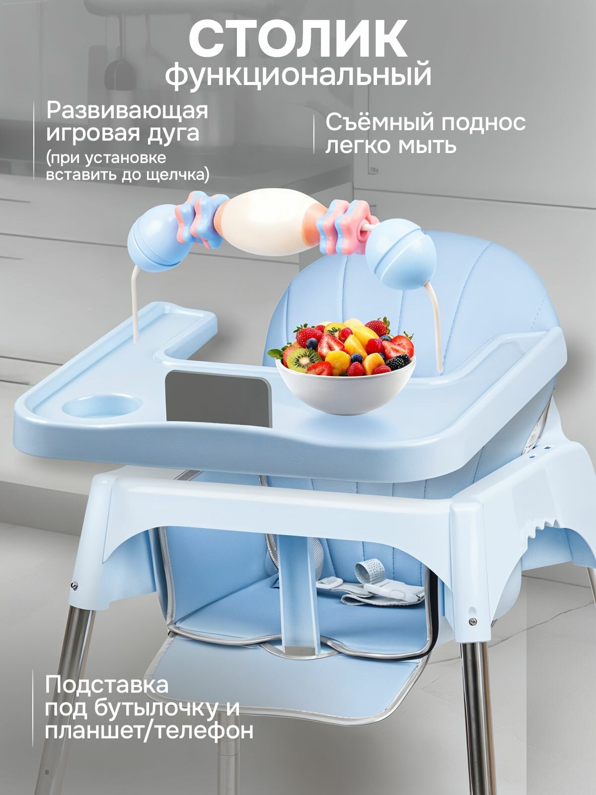 Стульчик для кормления, складной, трансформируемый, голубой информация: