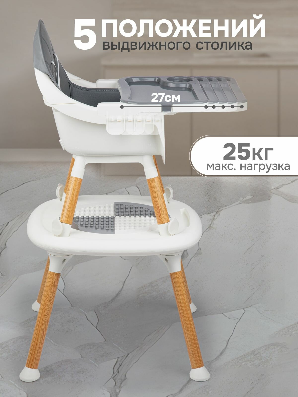 Стульчик для кормления, складной, трансформируемый, серый информация: