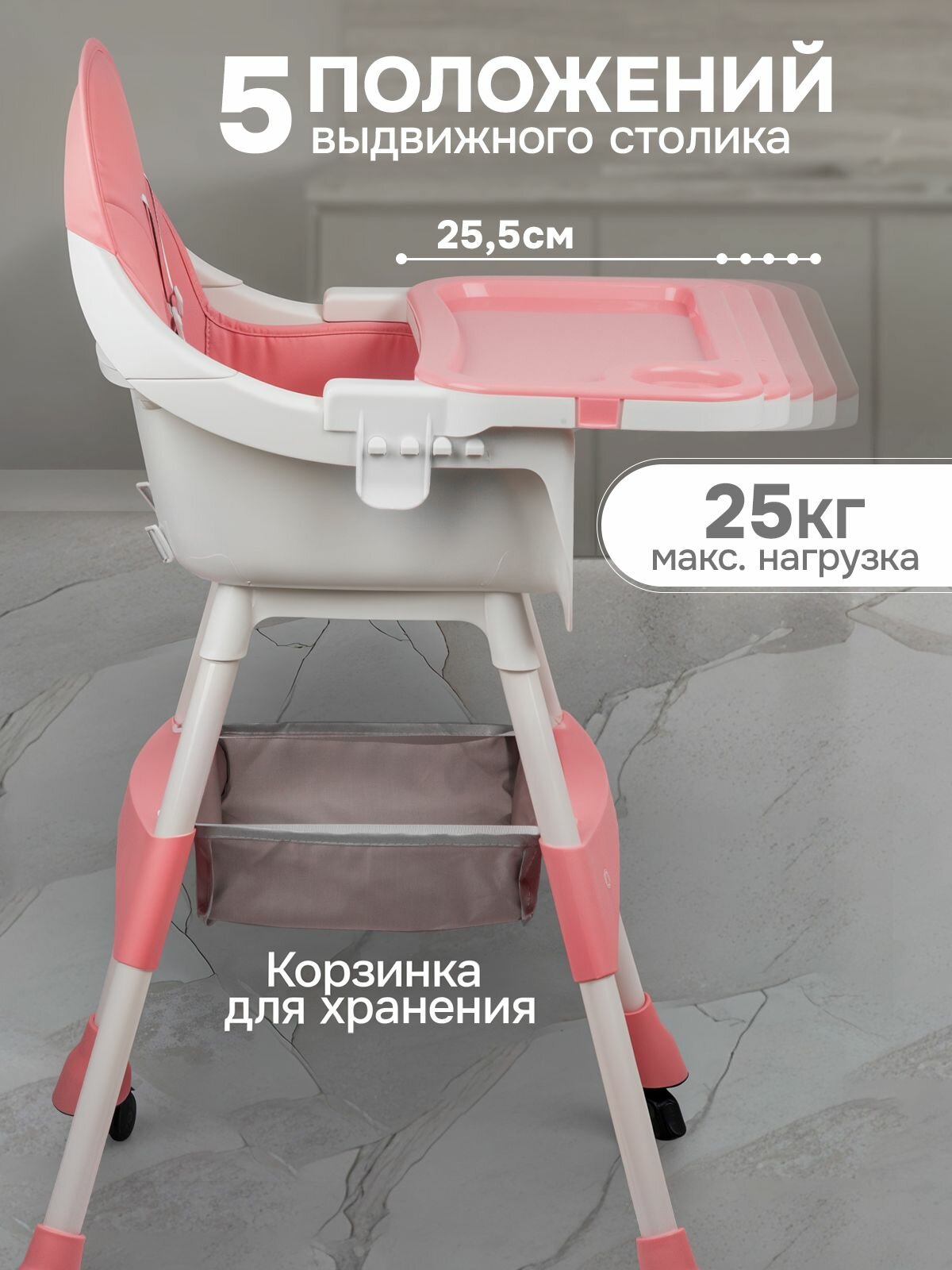 Стульчик для кормления, складной, трансформируемый, розовый информация: