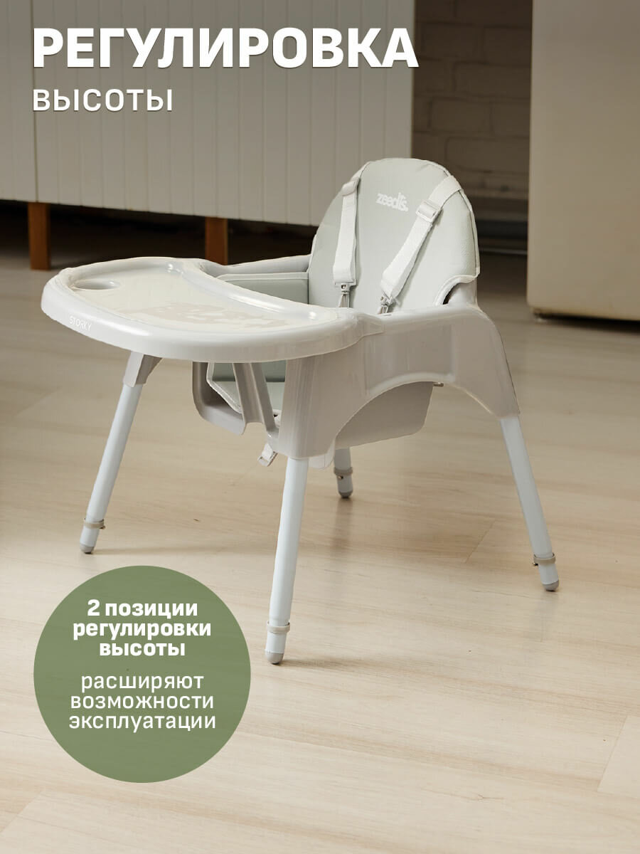 Отзывы на Стульчик для кормления ZEEDI'S два в одном со съемным столиком и ремнем для фиксации ребенка серый