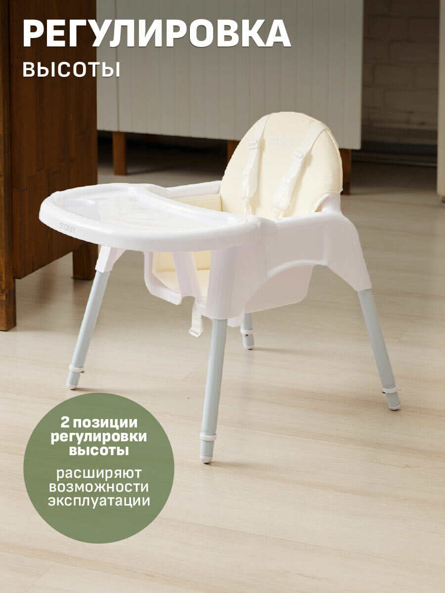 Стульчик для кормления ZEEDI'S два в одном со съемным столиком и ремнем для фиксации ребенка белый информация:
