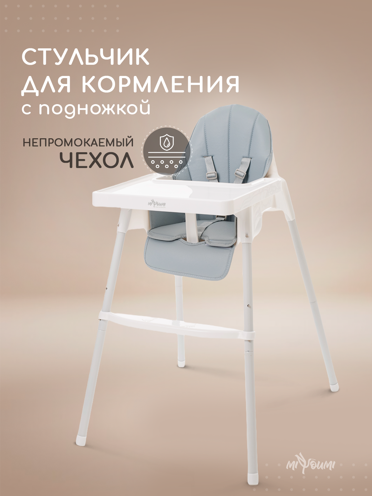 Стульчик для кормления "Miyoumi", складной, с подножкой, светло-серый информация: