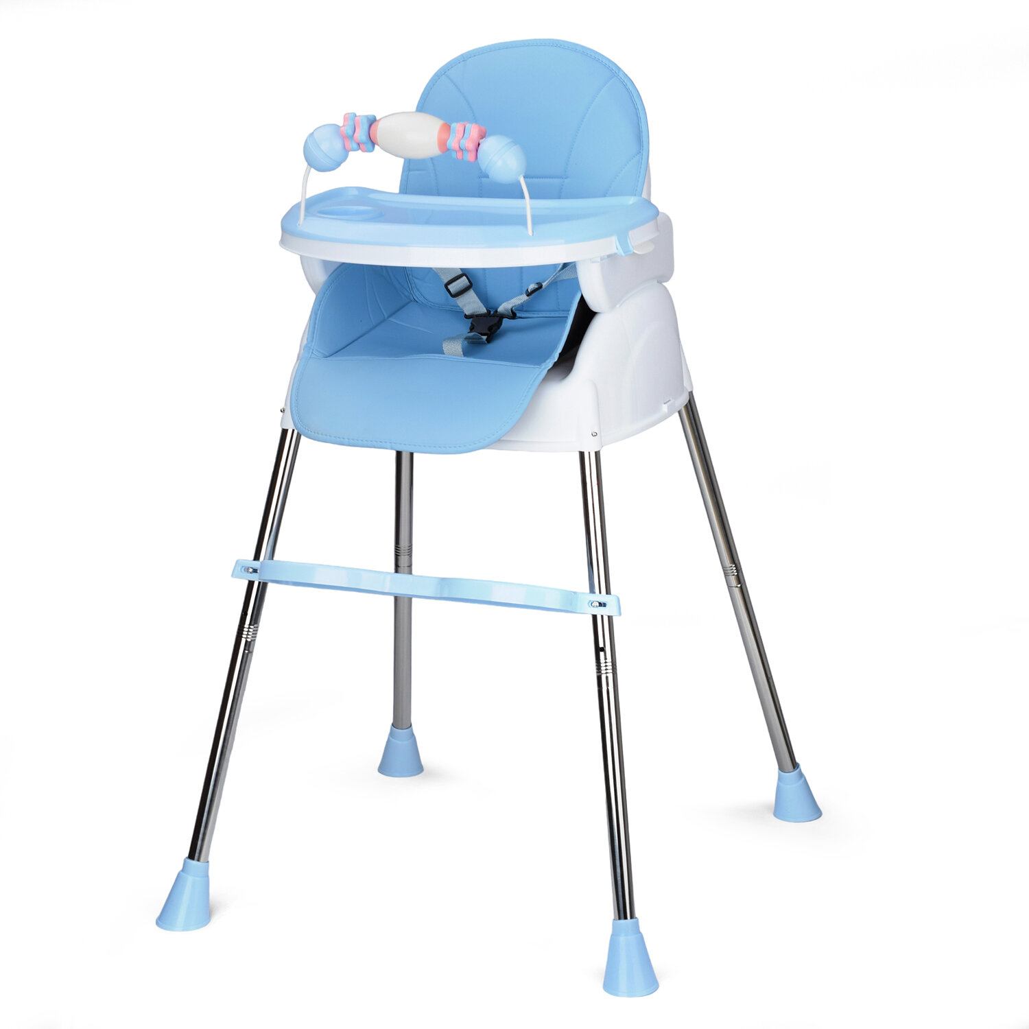 10 цен на Стульчик для кормления детский Prammy, экокожа, съемный столик, регулируемая высота, для детей от 6 мес. голубой