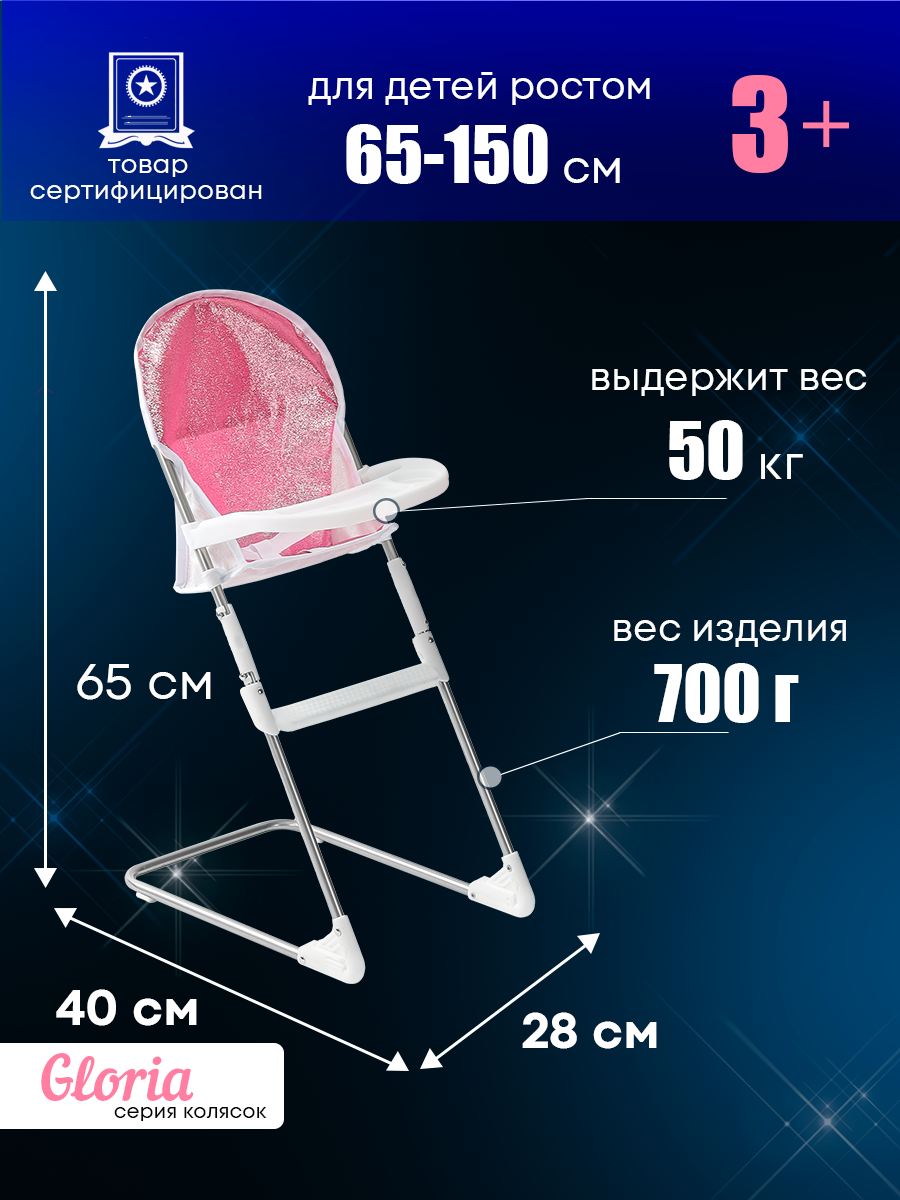 Игрушечный стульчик для кормления кукол до 46 см, серия Gloria 40х27.5х65см. Артикул 9630-GL информация: