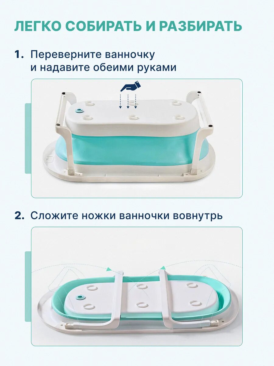 Ванночка детская складная для купания новорожденных, Цвет - Голубой