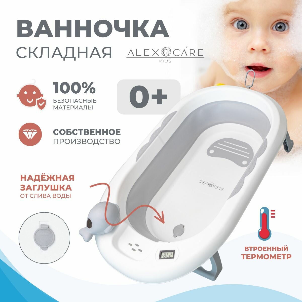 10 цен на Ванночка для купания новорожденных, Со встроеным термометром для воды, Цвет - Серый
