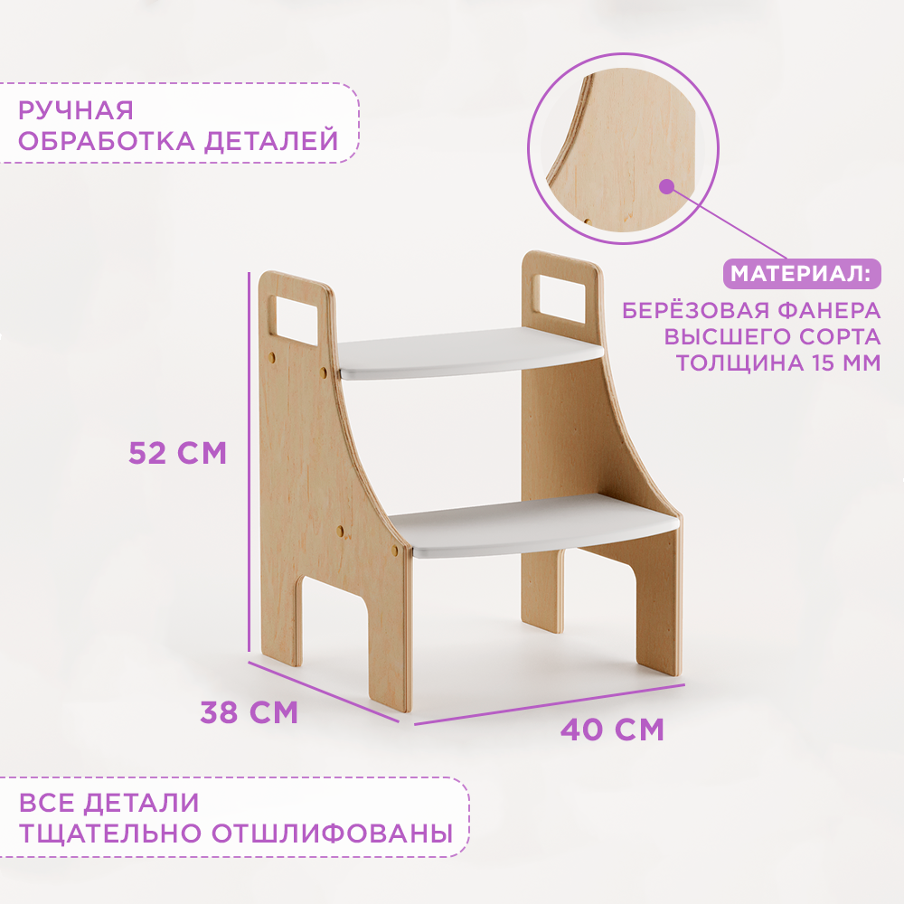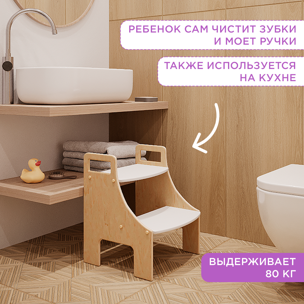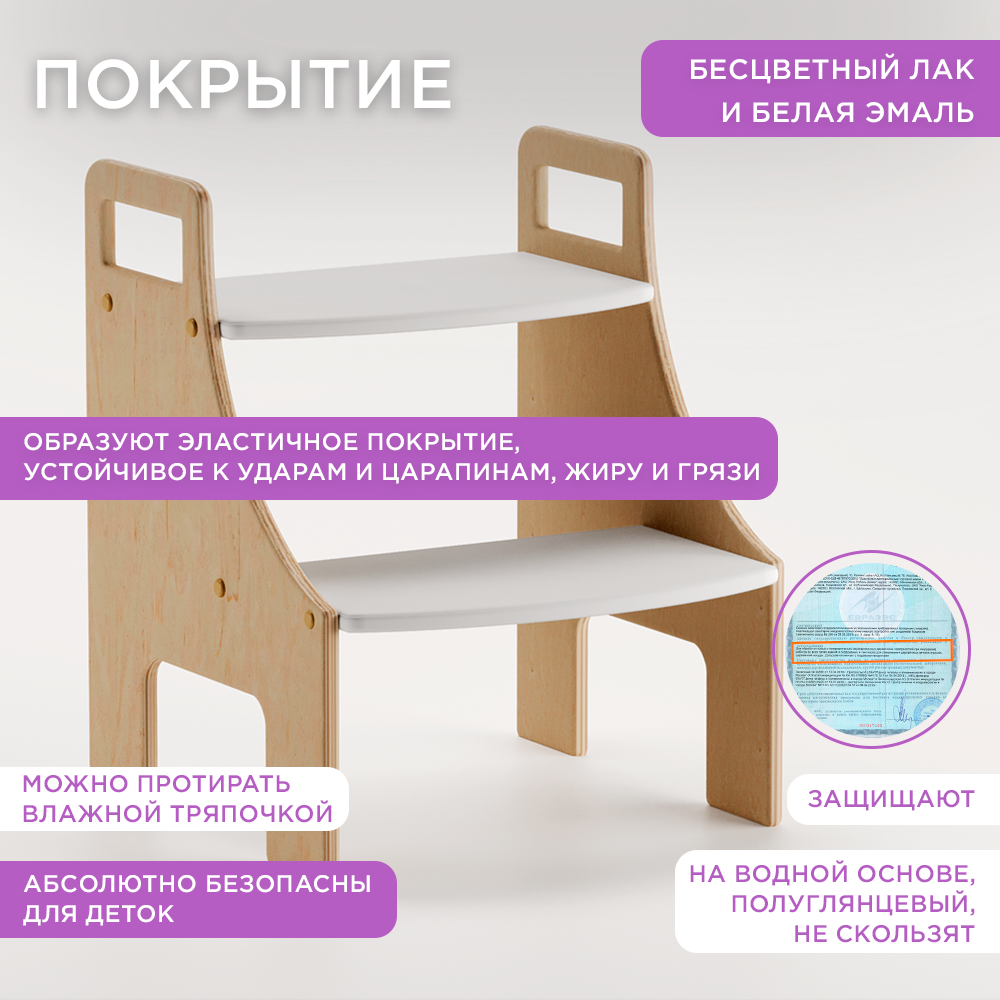 Стремянка-подставка Монтессори детская в ванную, белая и лаковая информация: