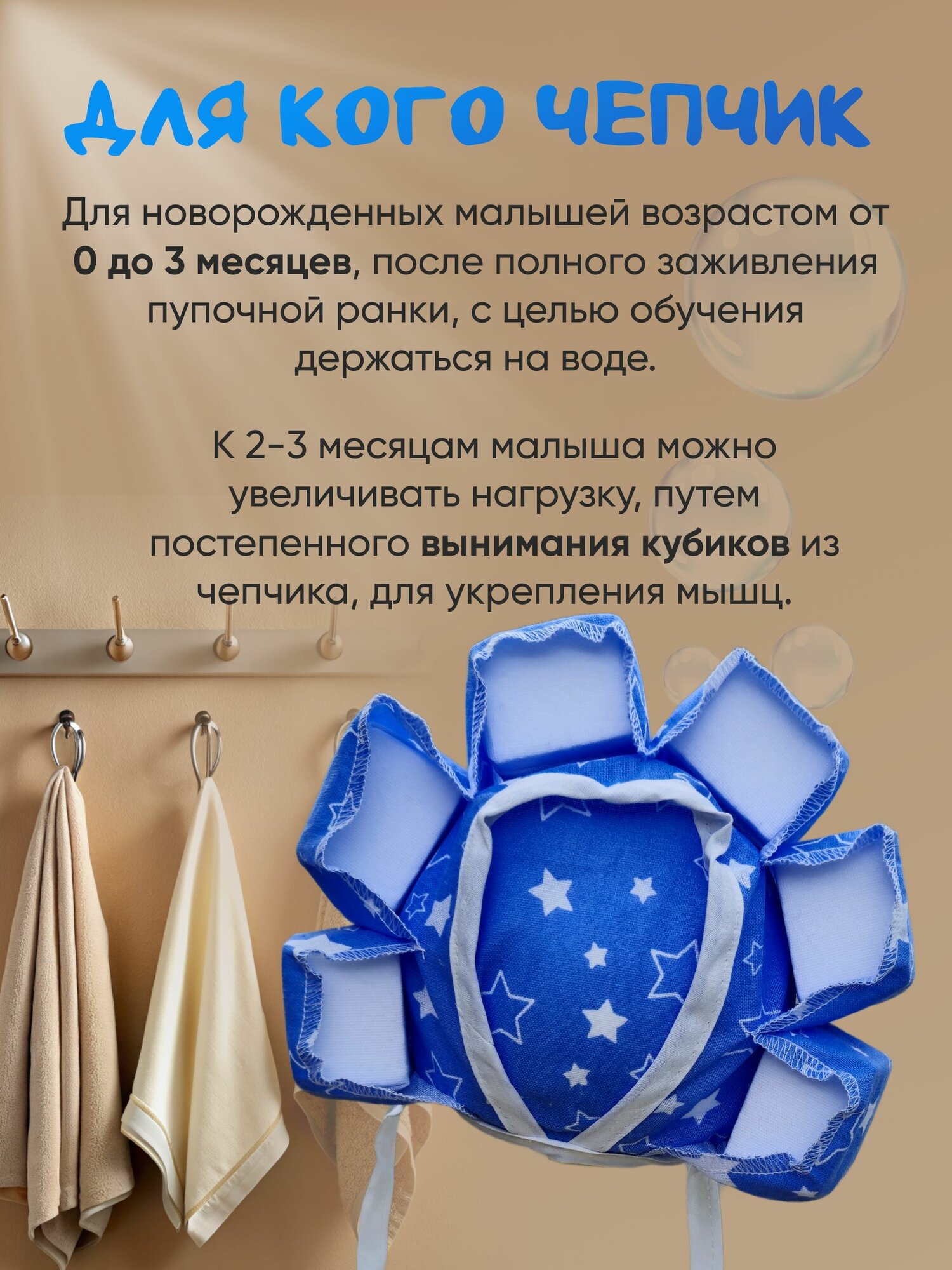 Чепчик для плавания новорожденных. Ромашка. Белые звезды информация: