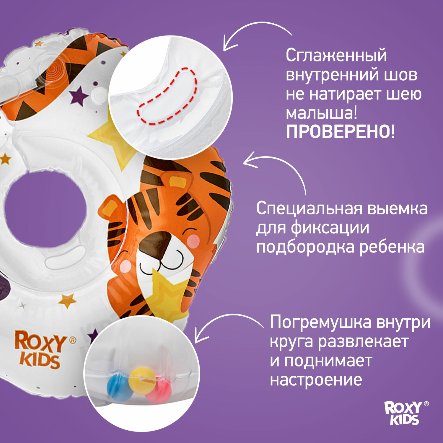 Круг для малышей надувной на шею для купания Tiger Star от ROXY-KIDS информация: