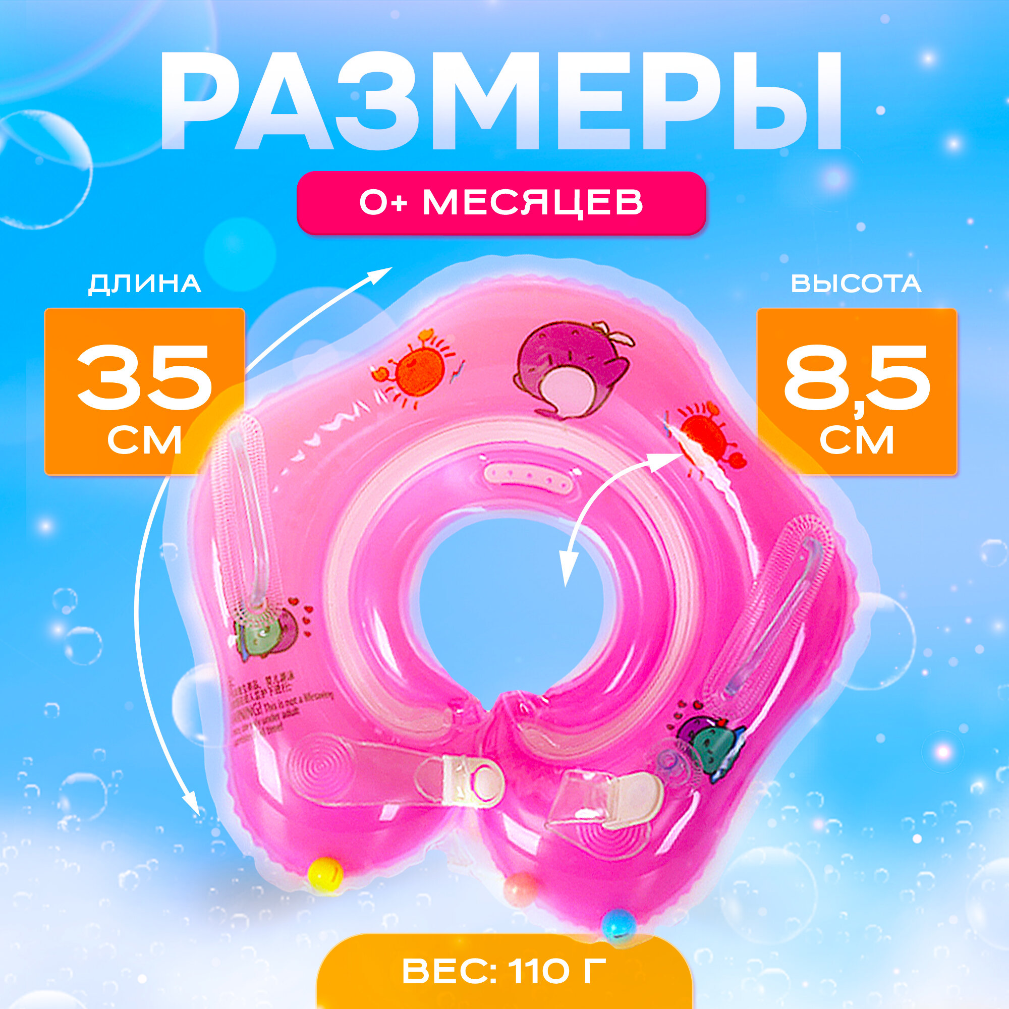 Круг для купания SHARKTOYS, для новорожденных, на шею, розовый, с погремушкой информация: