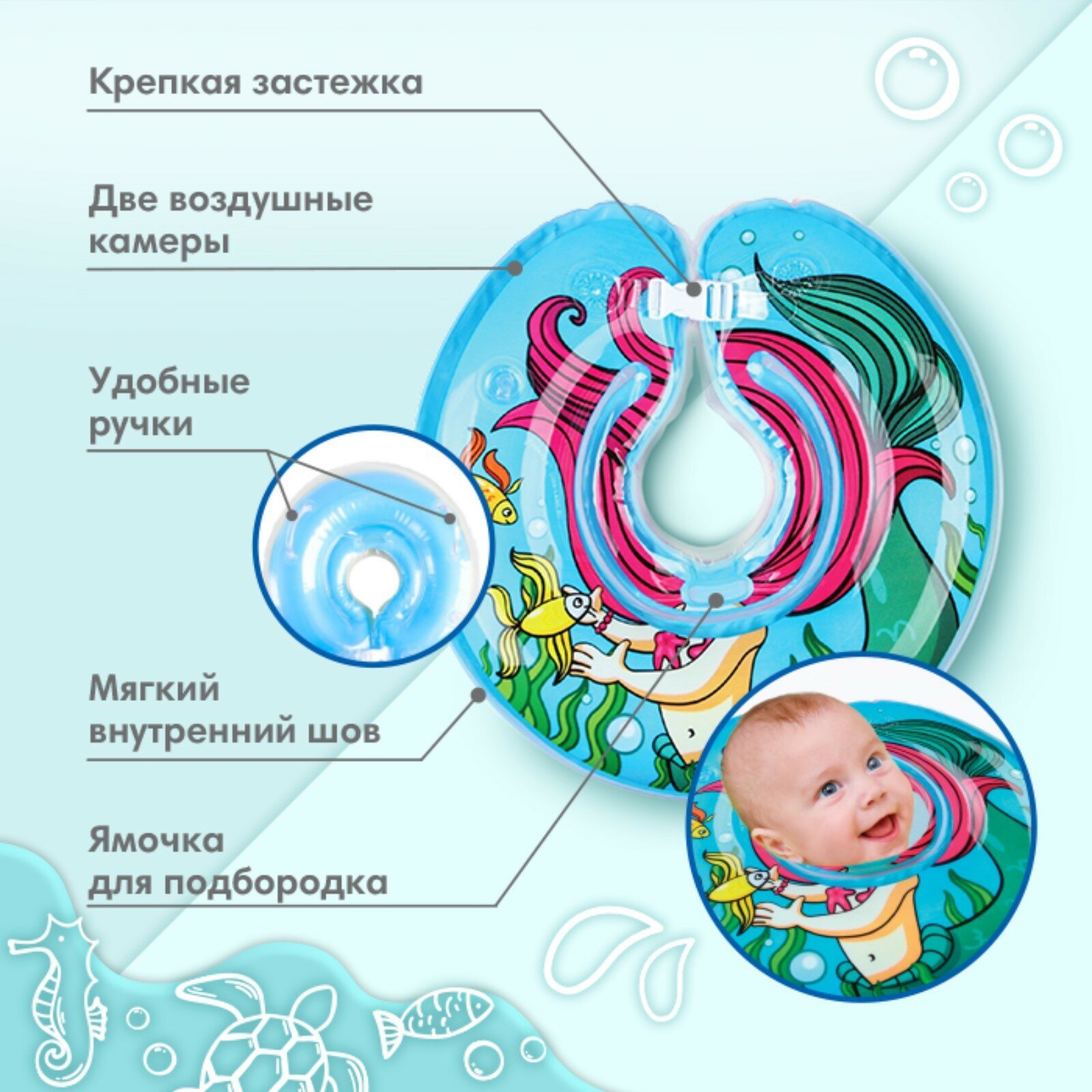 10 цен на Круг для плавания новорожденных на шею «Русалочка», надувной, с ручками, голубой