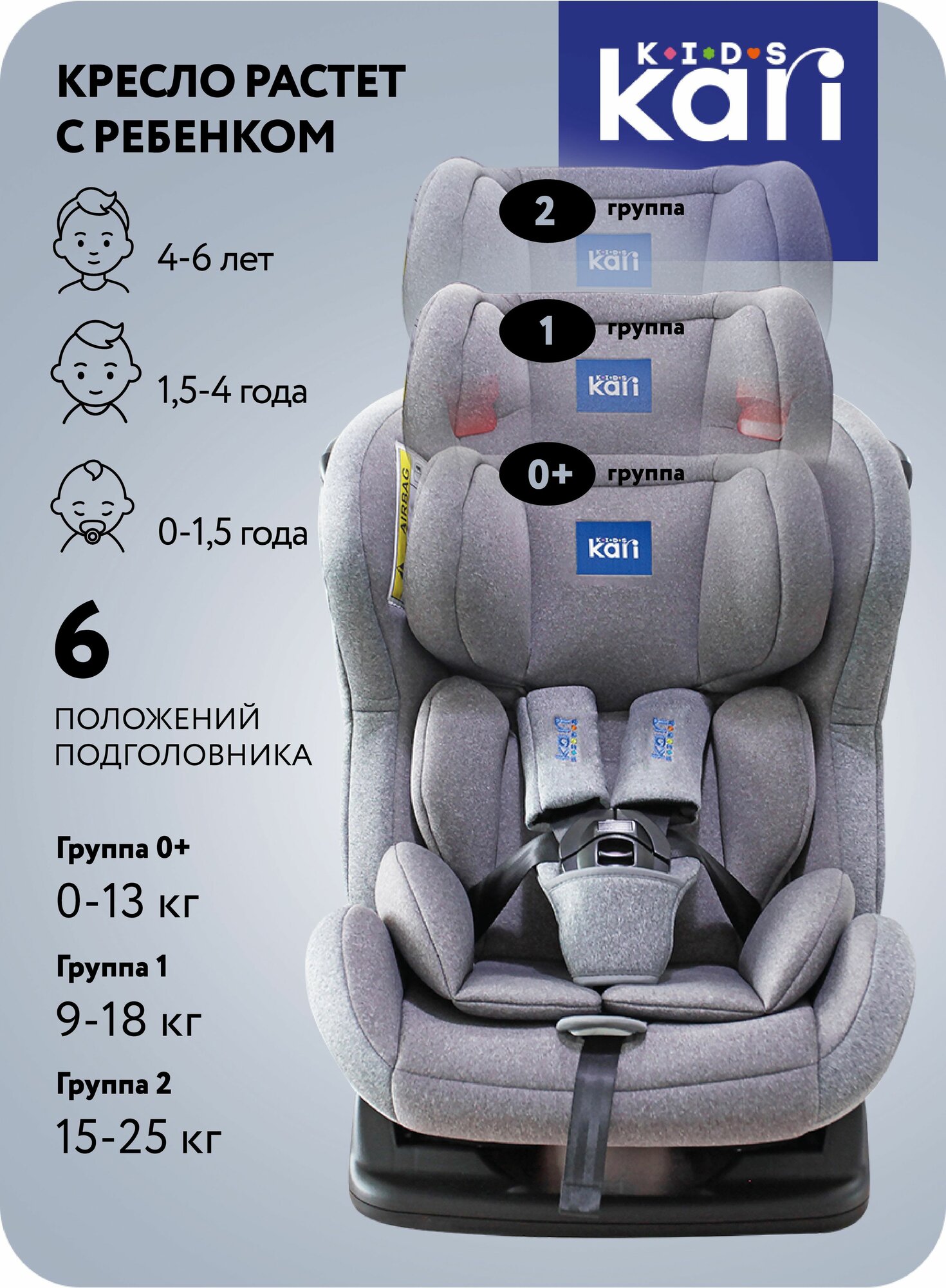 Детское автокресло KariKids группа с 0 до 6 лет ( вес до 25 кг), 4 уровня наклона, серое информация: