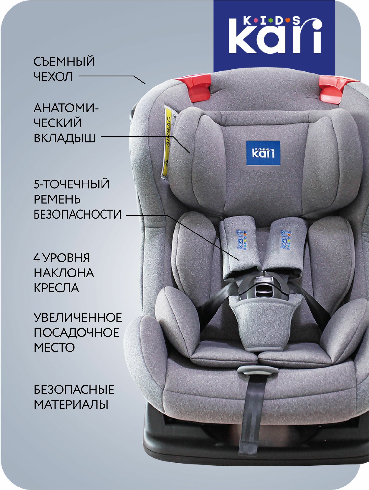 10 цен на Детское автокресло KariKids группа с 0 до 6 лет ( вес до 25 кг), 4 уровня наклона, серое