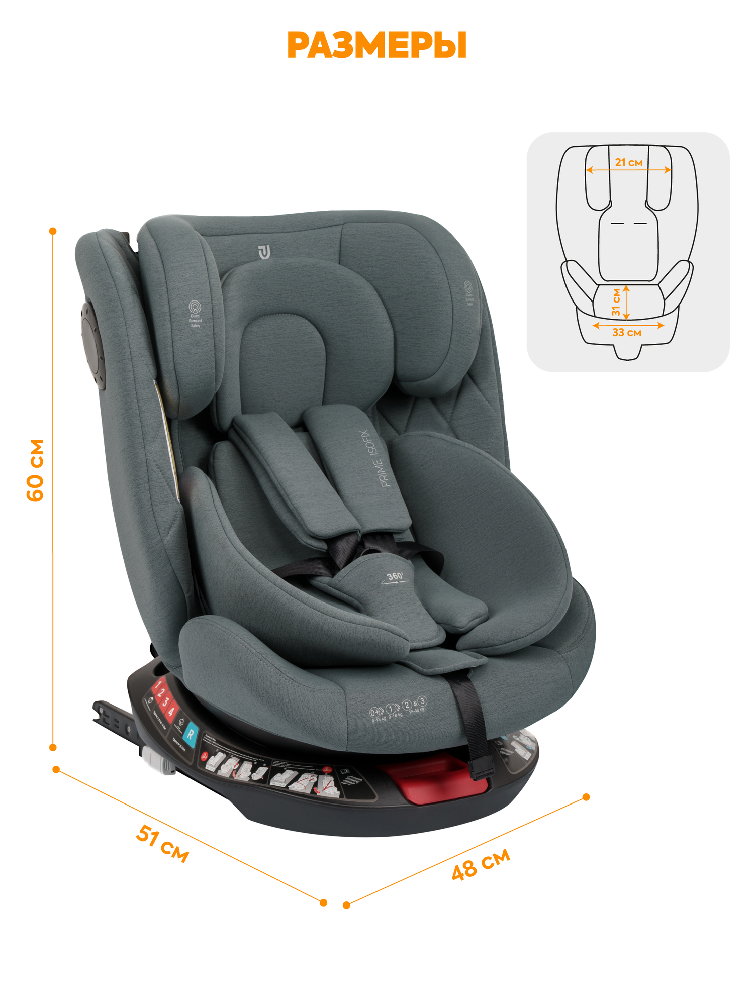 Автокресло детское Jovola Prime Isofix для новорожденных от 0 до 36 кг, группа 0+1+2+3, серый 10 579 ₽
