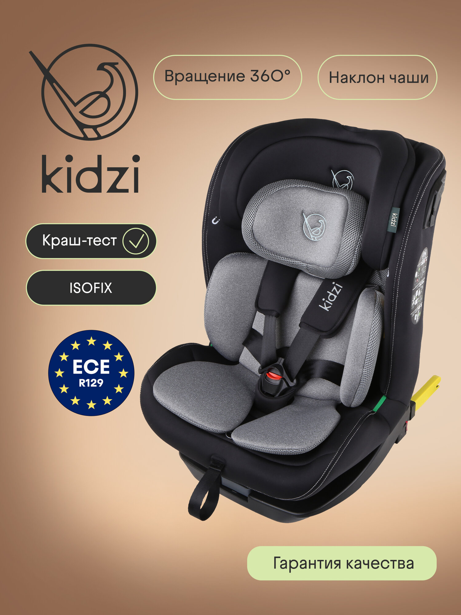 10 цен на Автокресло детское Kidzi SPIN 360 i-SIZE для новорожденных и детей ростом 40-150 см, c ISOFIX и якорным ремнем, черный