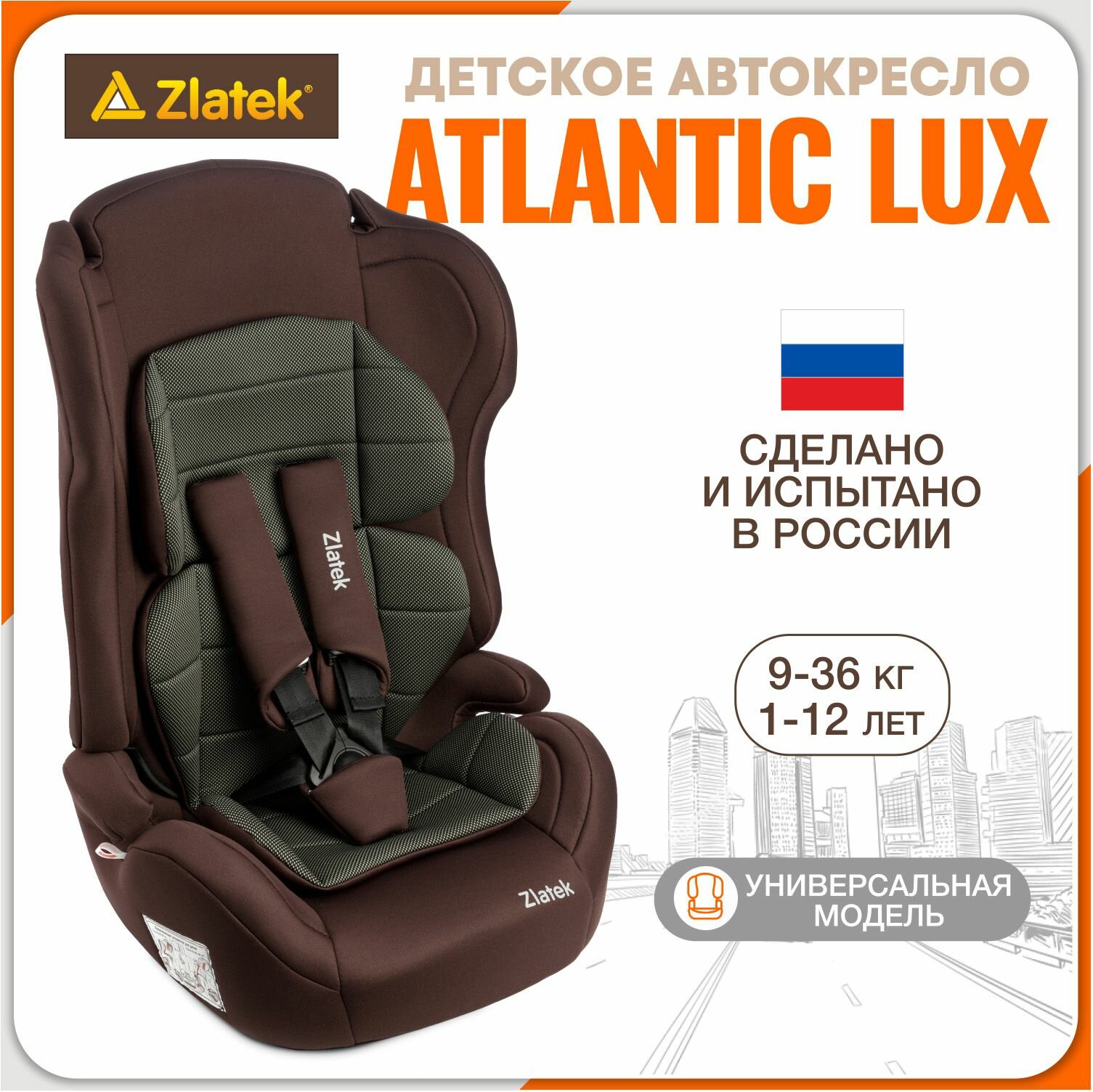Автокресло детское Zlatek Atlantic Lux, 9 36 кг, карбон коричневый информация: