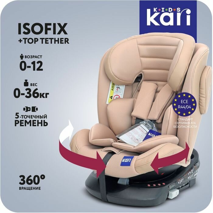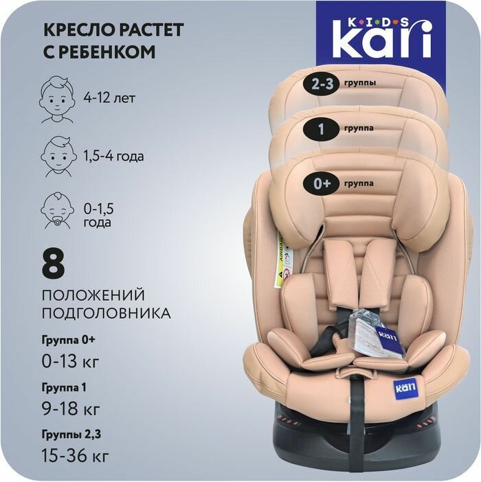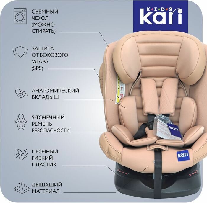 10 цен на Детское автокресло KariKids группы 0-3 (0-36 кг) с поворотным механизмом, бежевое