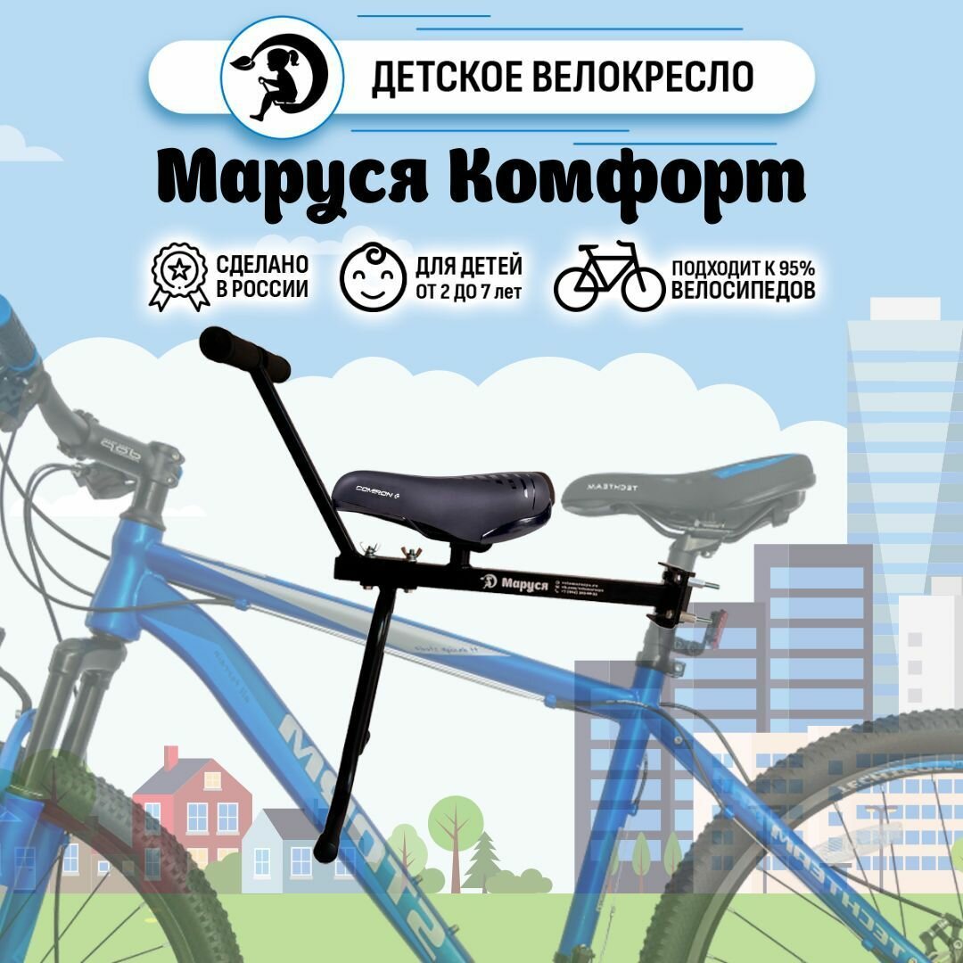 10 цен на Велокресло Маруся Комфорт седло Люкс рассчитано до 35 кг, переднее, крепление на подседельный штырь, кресло для ребенка на велосипед