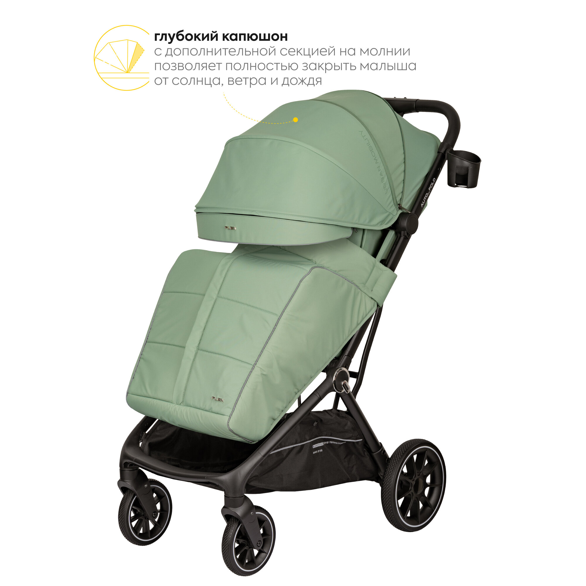 Коляска прогулочная детская Jovola Flex легкая, с автосложением и ручкой для транспортировки, зеленый информация: