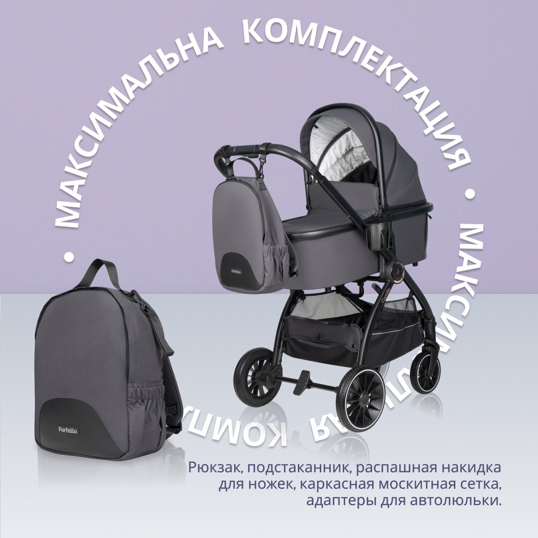 Коляска 3 в 1 для новорожденных всесезонная Farfello Camille, серый информация:
