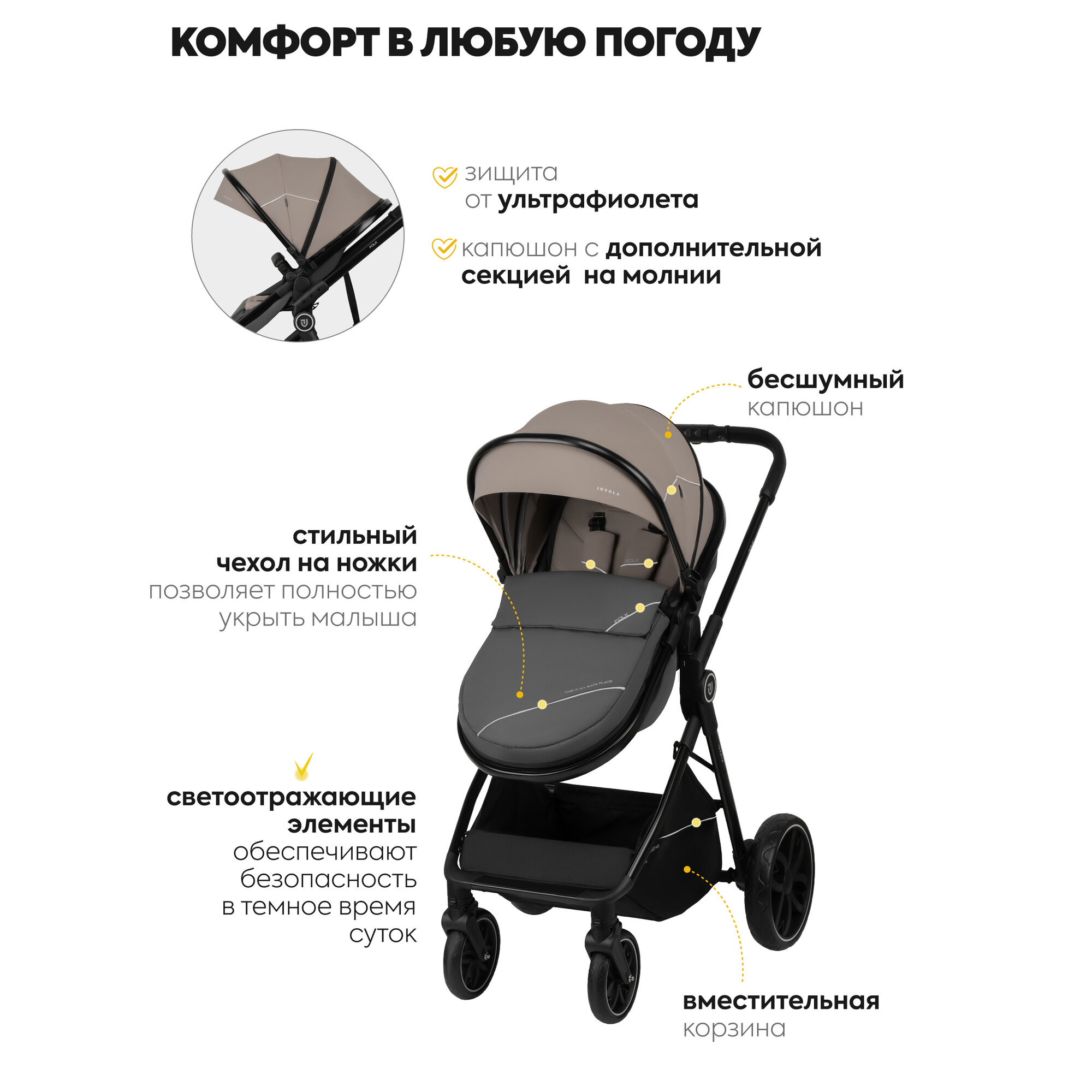 Коляска трансформер для новорожденных 2 в 1 Jovola Folk универсальная, всесезонная с реверсивным блоком, бежевый информация: