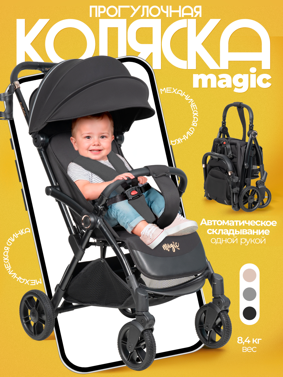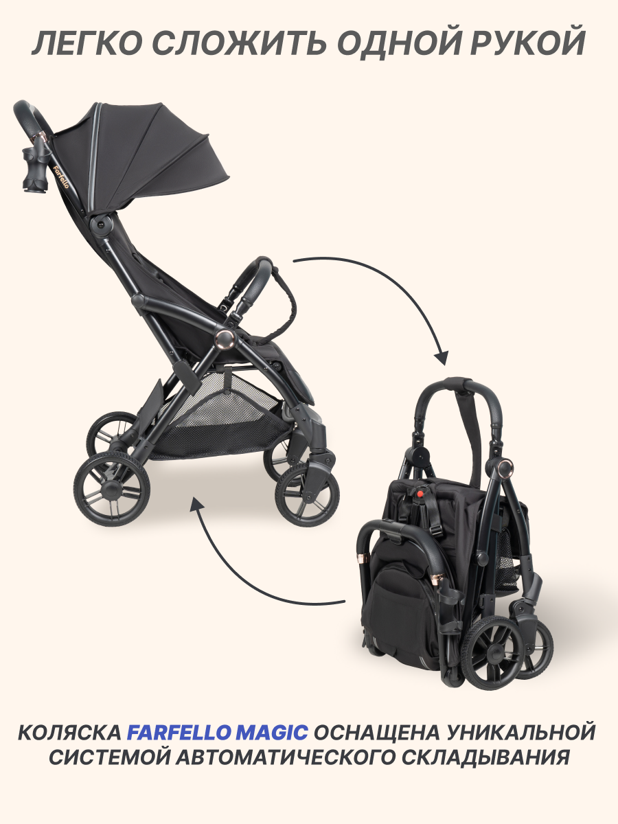 Коляска прогулочная детская самоскладывающаяся Farfello Magic, черный информация: