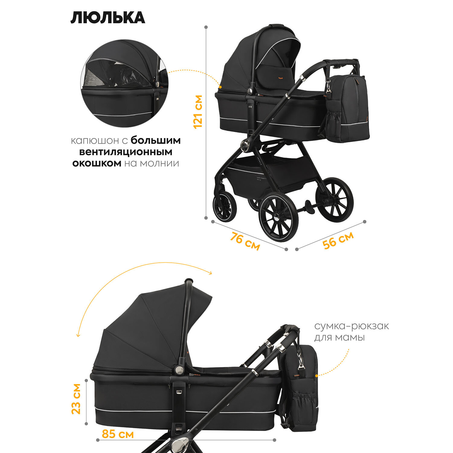 Детская универсальная коляска 3 в 1 Jovola Pepper, всесезонная с автолюлькой, реверсивный блок, черный информация:
