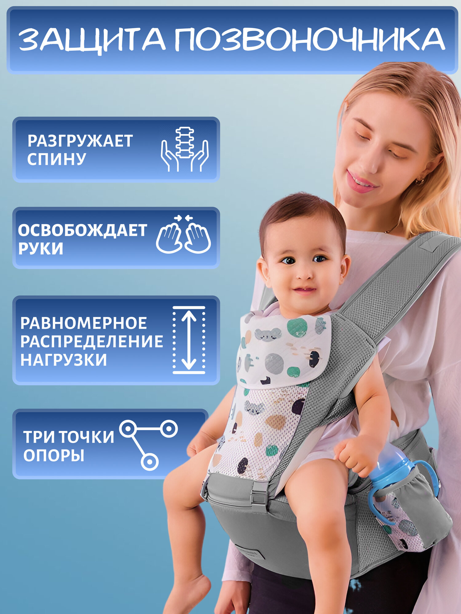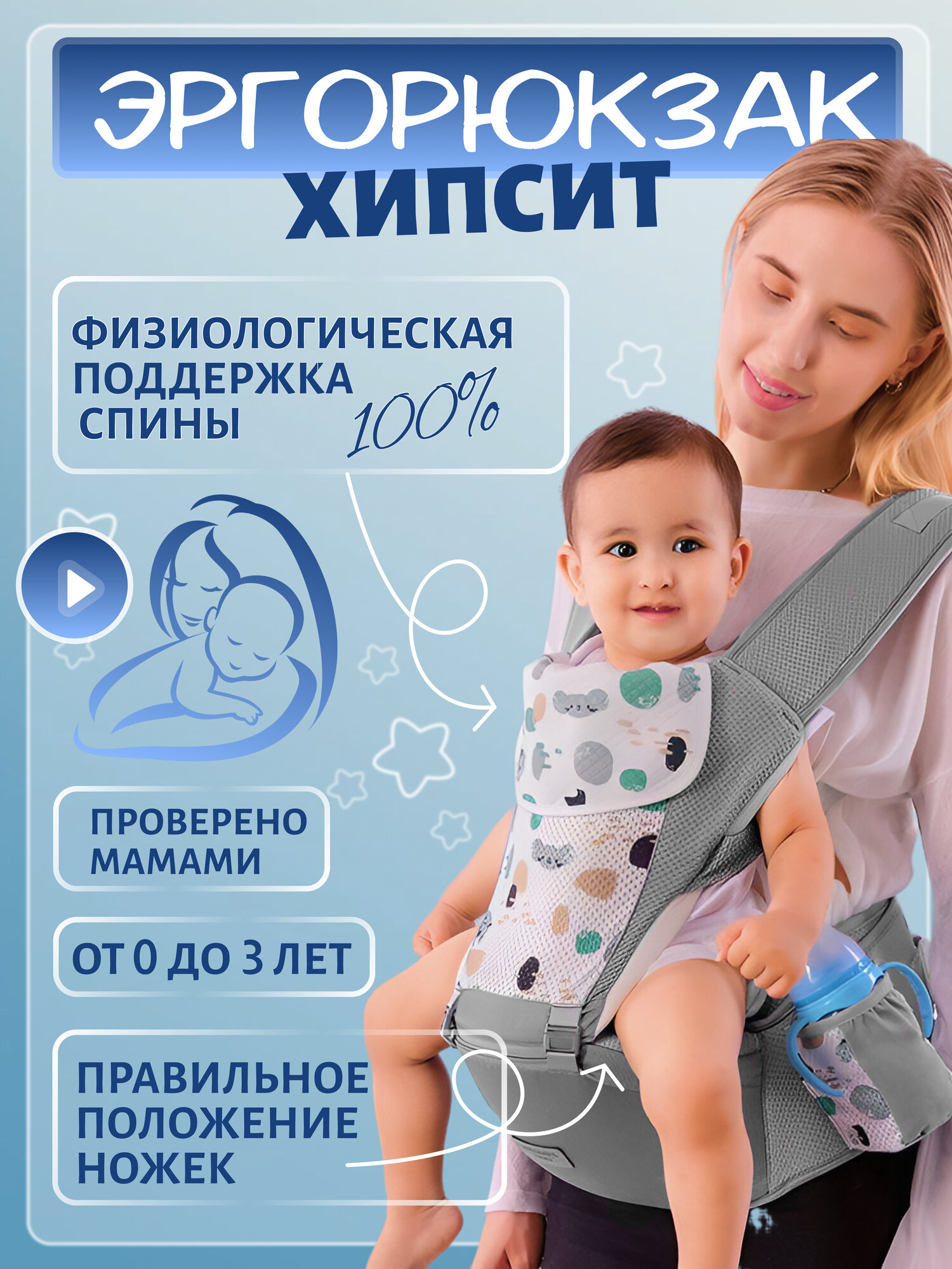 Отзывы на Эргорюкзак для детей от 6 месяцев хипсит переноска поясной, серый