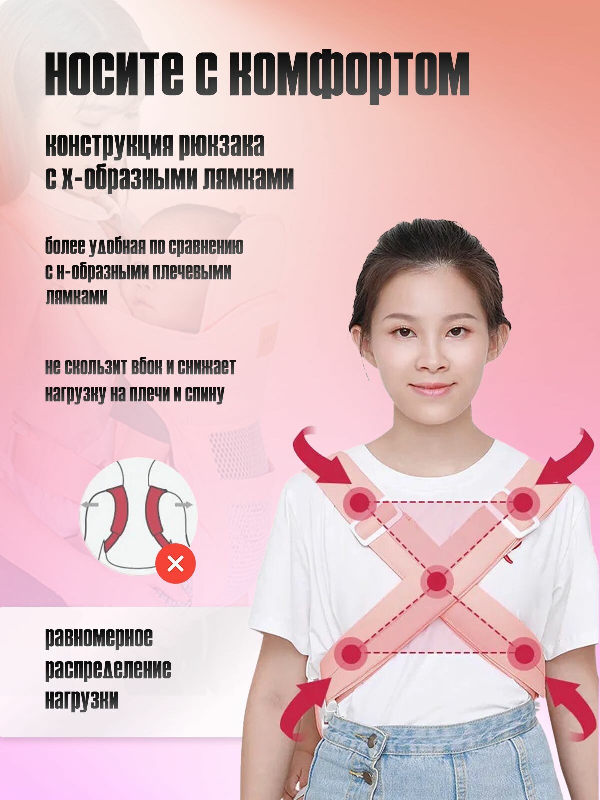 Эргорюкзак. Хипсит. Кенгуру переноска от 0-36 мес. до 25 кг, розовый. Слинг для путешествий, для детей. Эрго рюкзак для новорожденных.