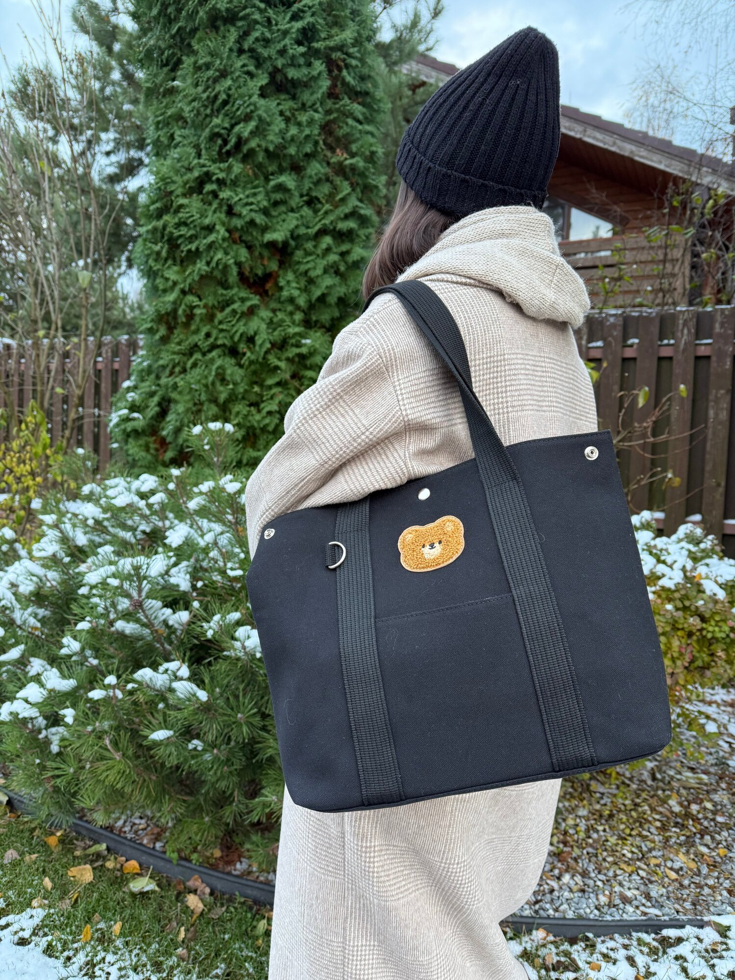 Сумка-органайзер для детских принадлежностей "Медвежонок", черная, текстиль, 31x43x13 см информация: