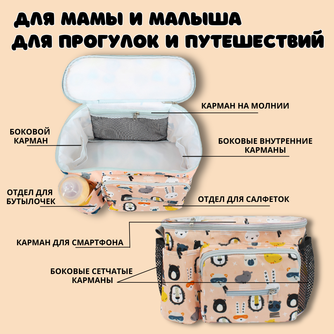 10 цен на Сумка-органайзер для коляски, розовая, на липучках, водонепроницаемая