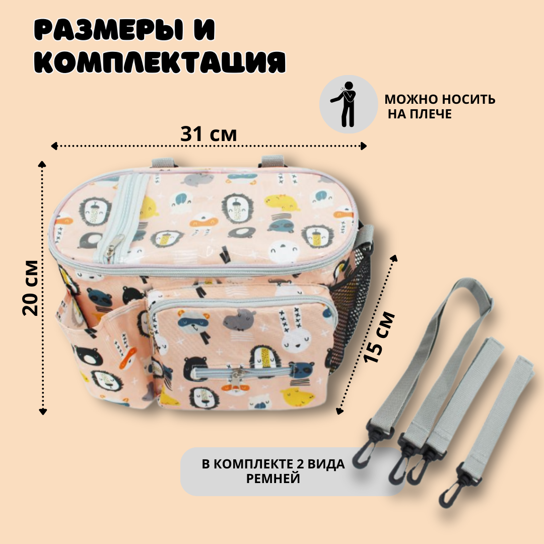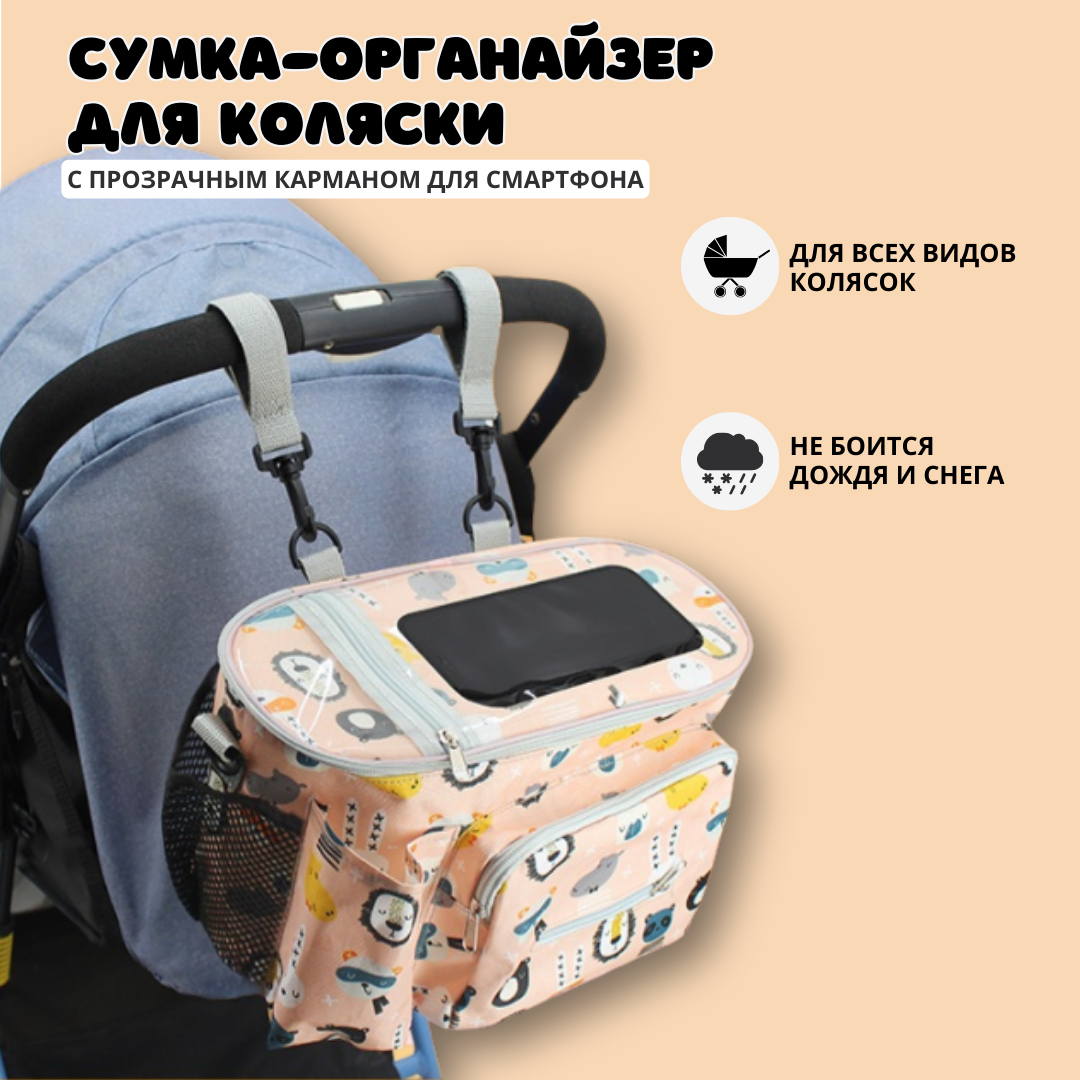 Сумка-органайзер для коляски, розовая, на липучках, водонепроницаемая информация: