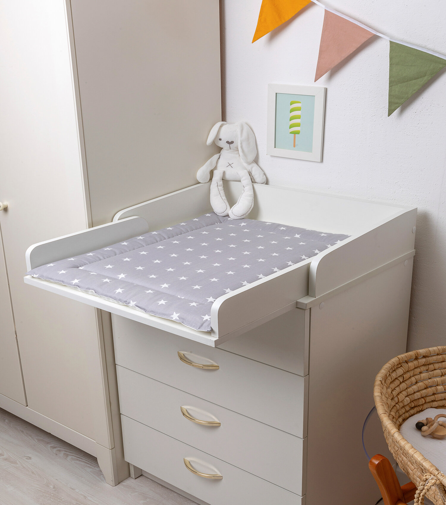 Матрас пеленальный двухсторонний для комода шириной 60 см. серый звезды информация: