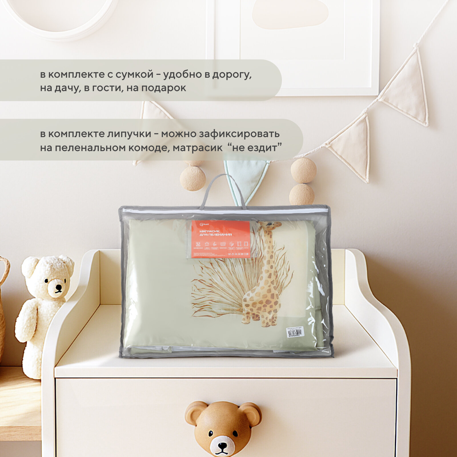 Пеленальный матрасик Rant Giraffe oxford 70х70 с сумкой, Giraffe информация: