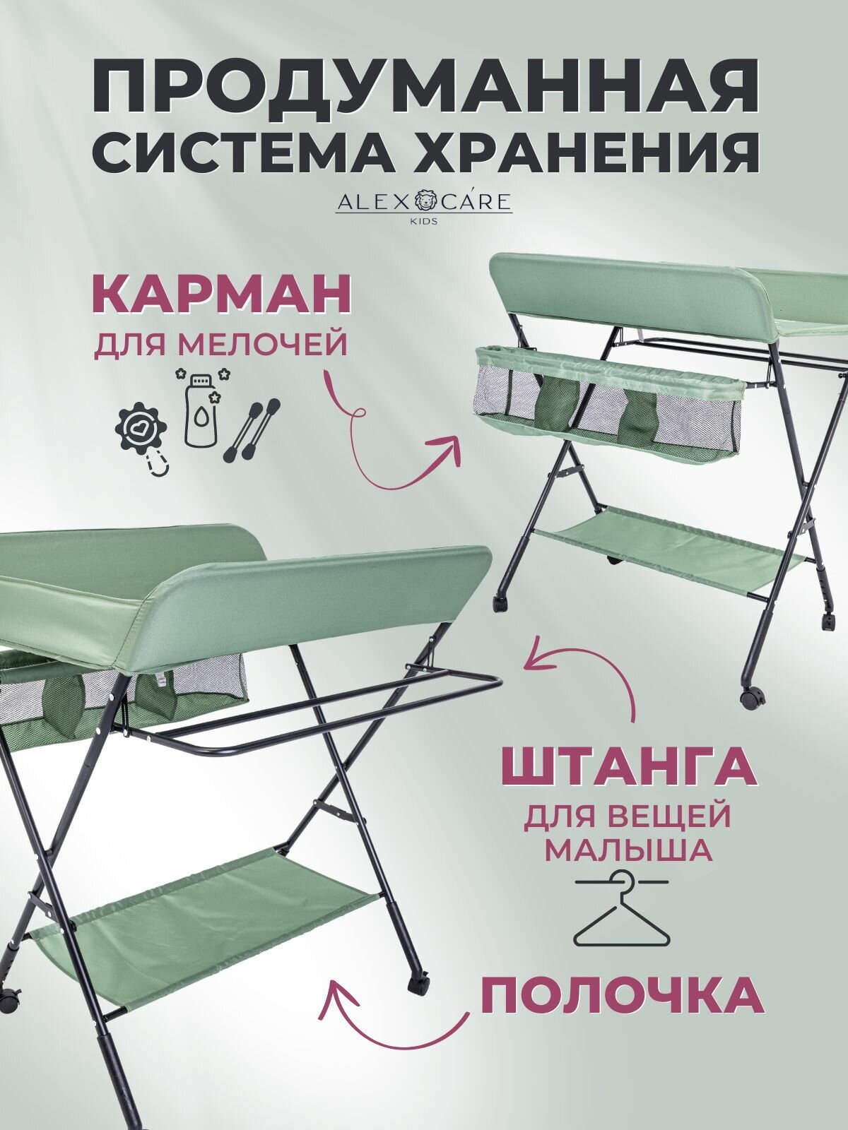 10 цен на Пеленальный столик ALEX CARE KIDS, металл, ткань, салатовый, 48 х 77 х 80 см