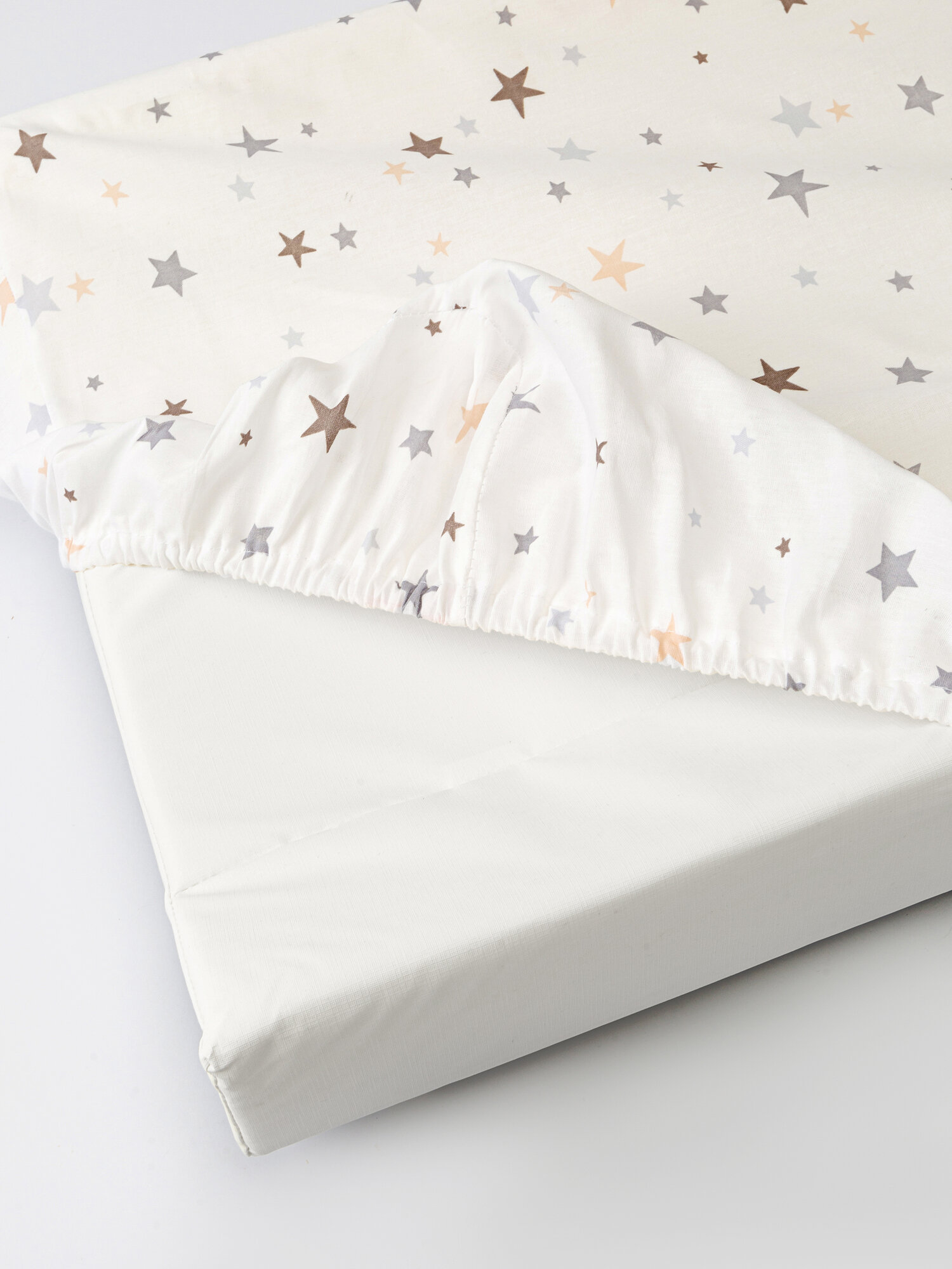 Пеленка чехол на резинке для детской пеленальной доски бязь белый звезды серые 1 365 ₽