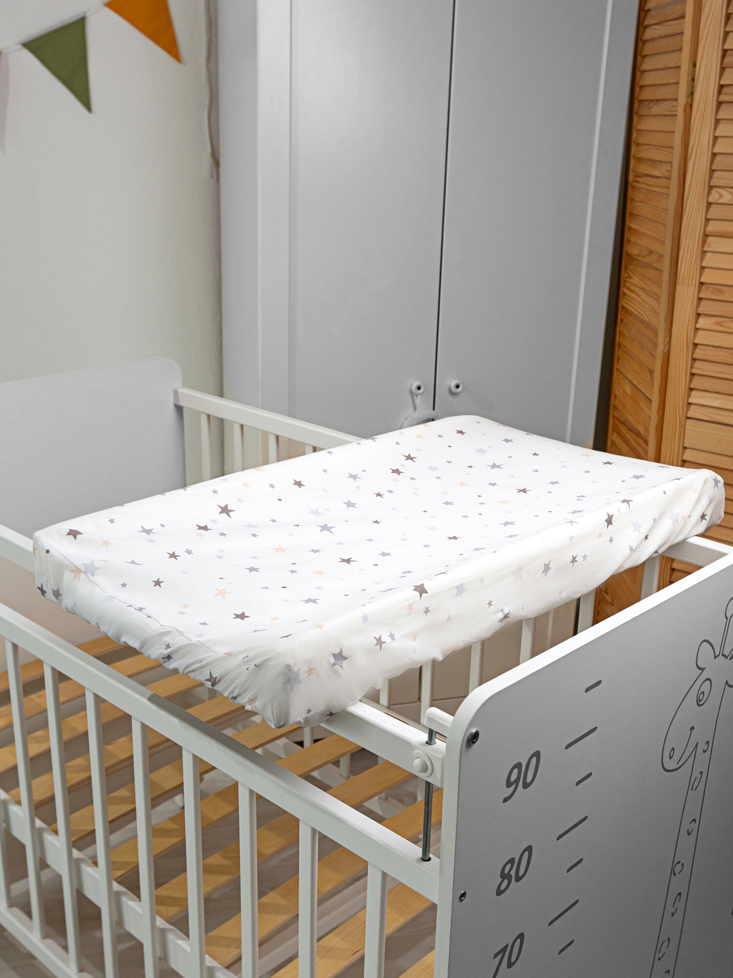 Пеленальная доска для новорожденного на кровать, комод с чехлом на резинке бязь белый звезды серые 3 185 ₽