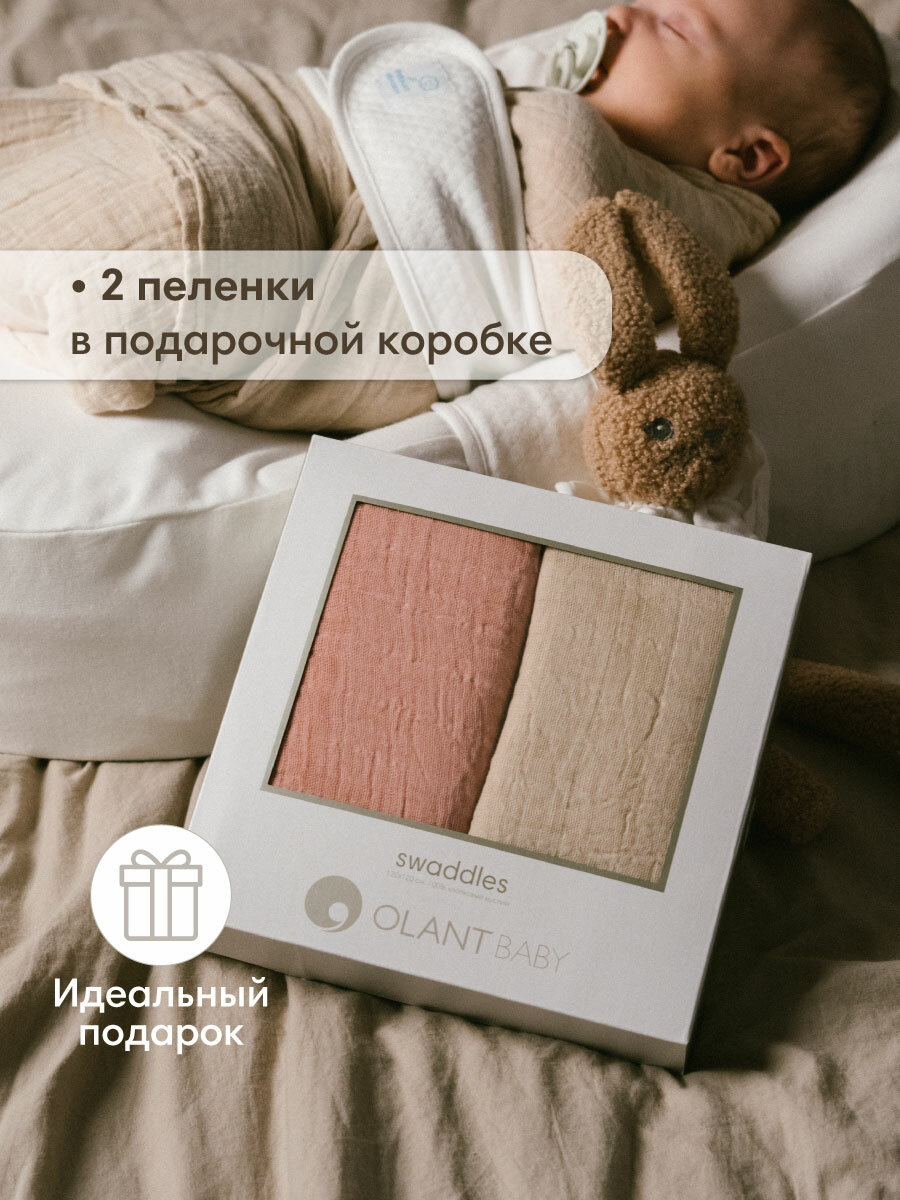 Муслиновые пеленки для новорожденных OLANT BABY набор 2 штуки, 120х120 см, бежевая, розовая информация: