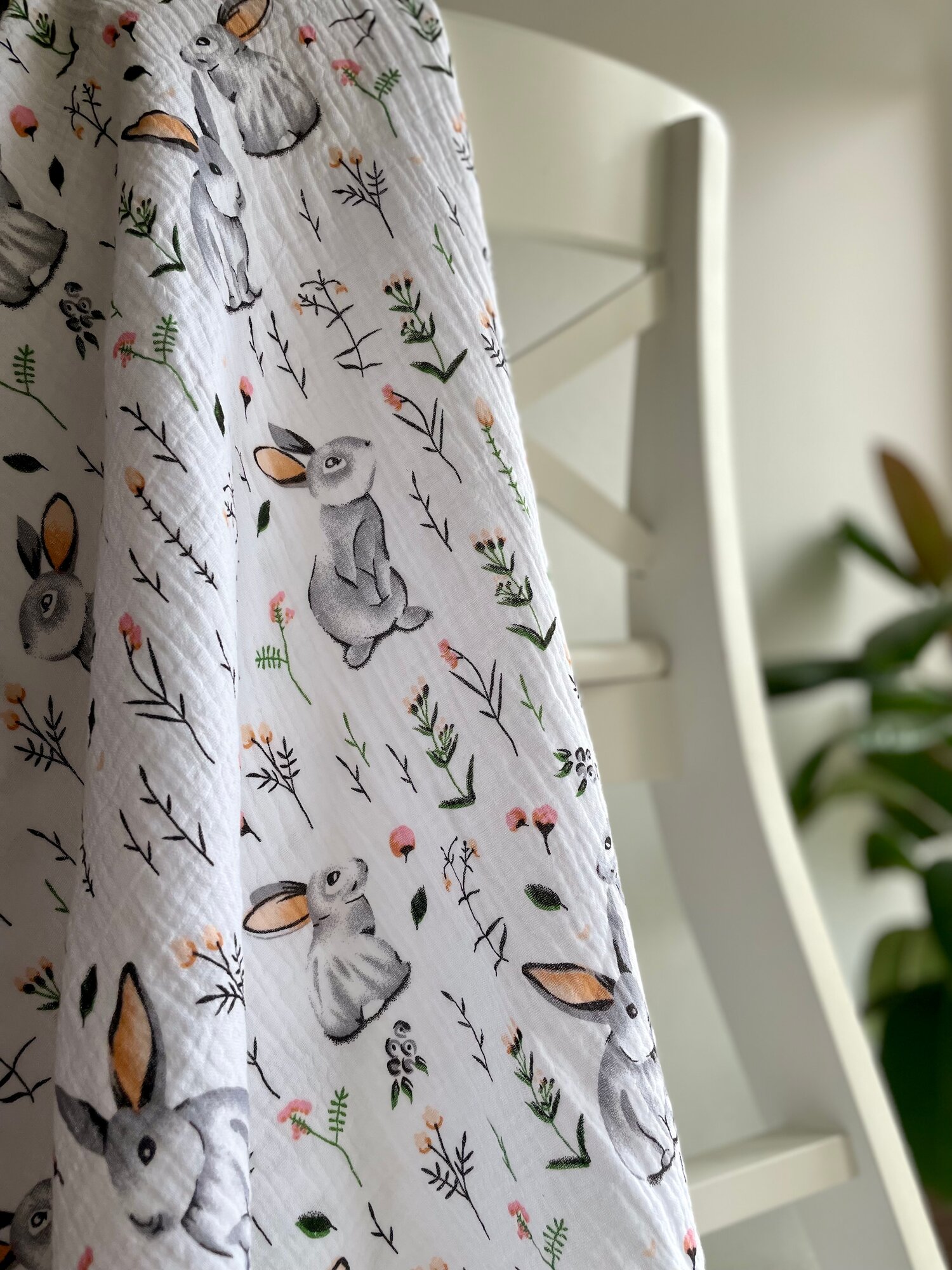Пеленка текстильная муслиновая MuslinKids для новорожденных 100х135 см, Хлопок, Муслин, белый (зайчики) информация: