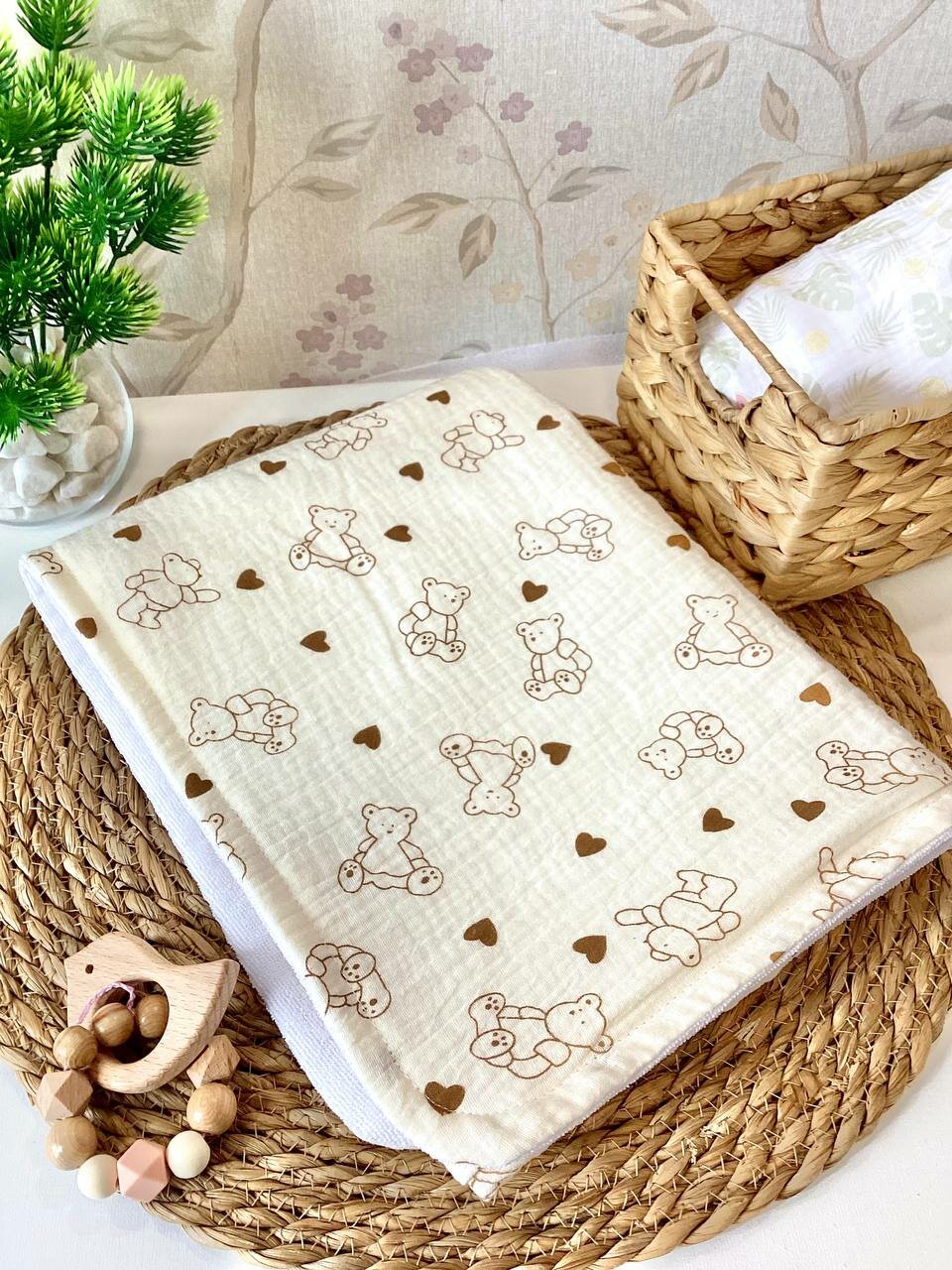 Муслиновая непромокаемая многоразовая пелёнка 60/90 см "Мишки и сердечки" информация: