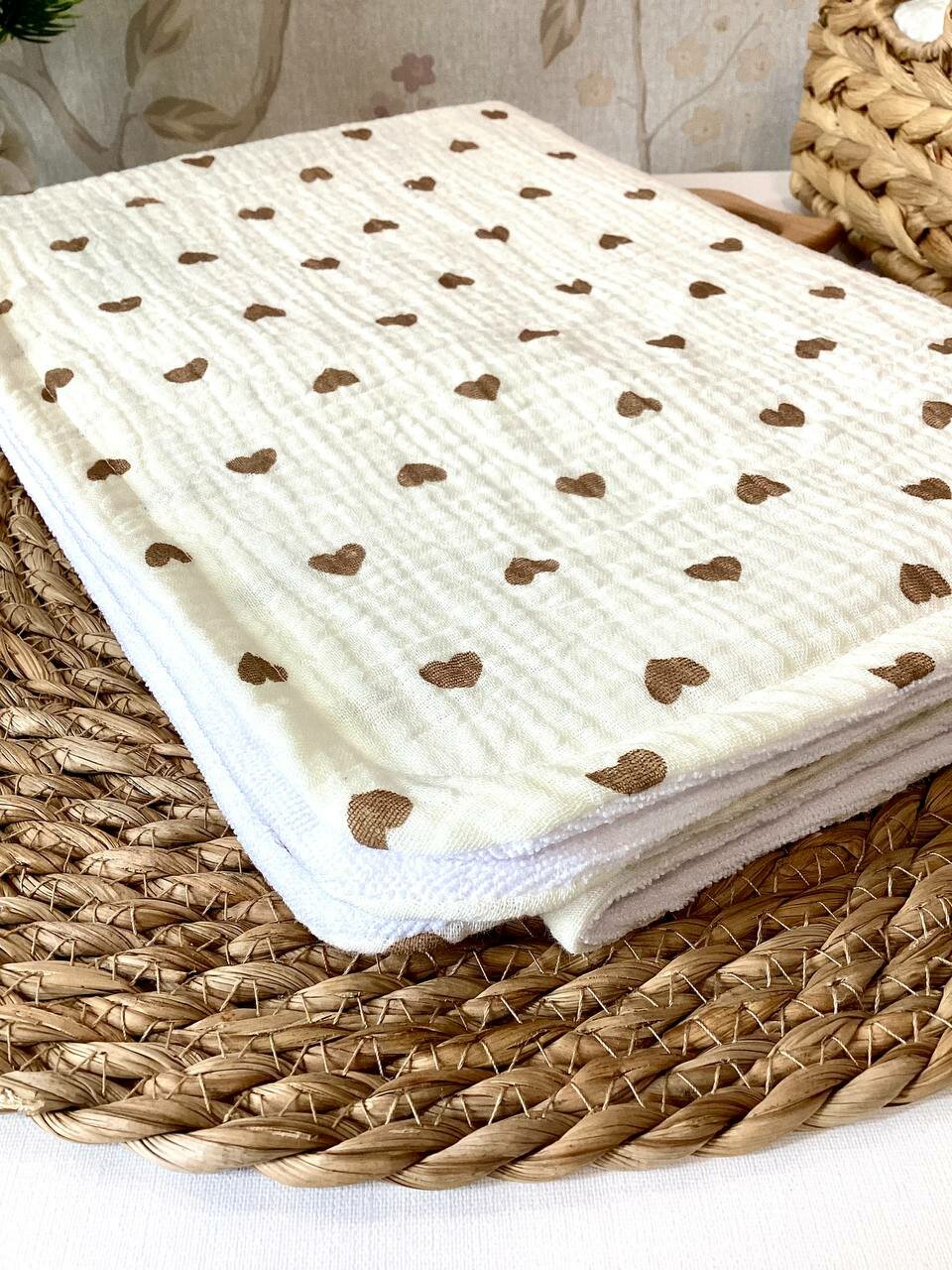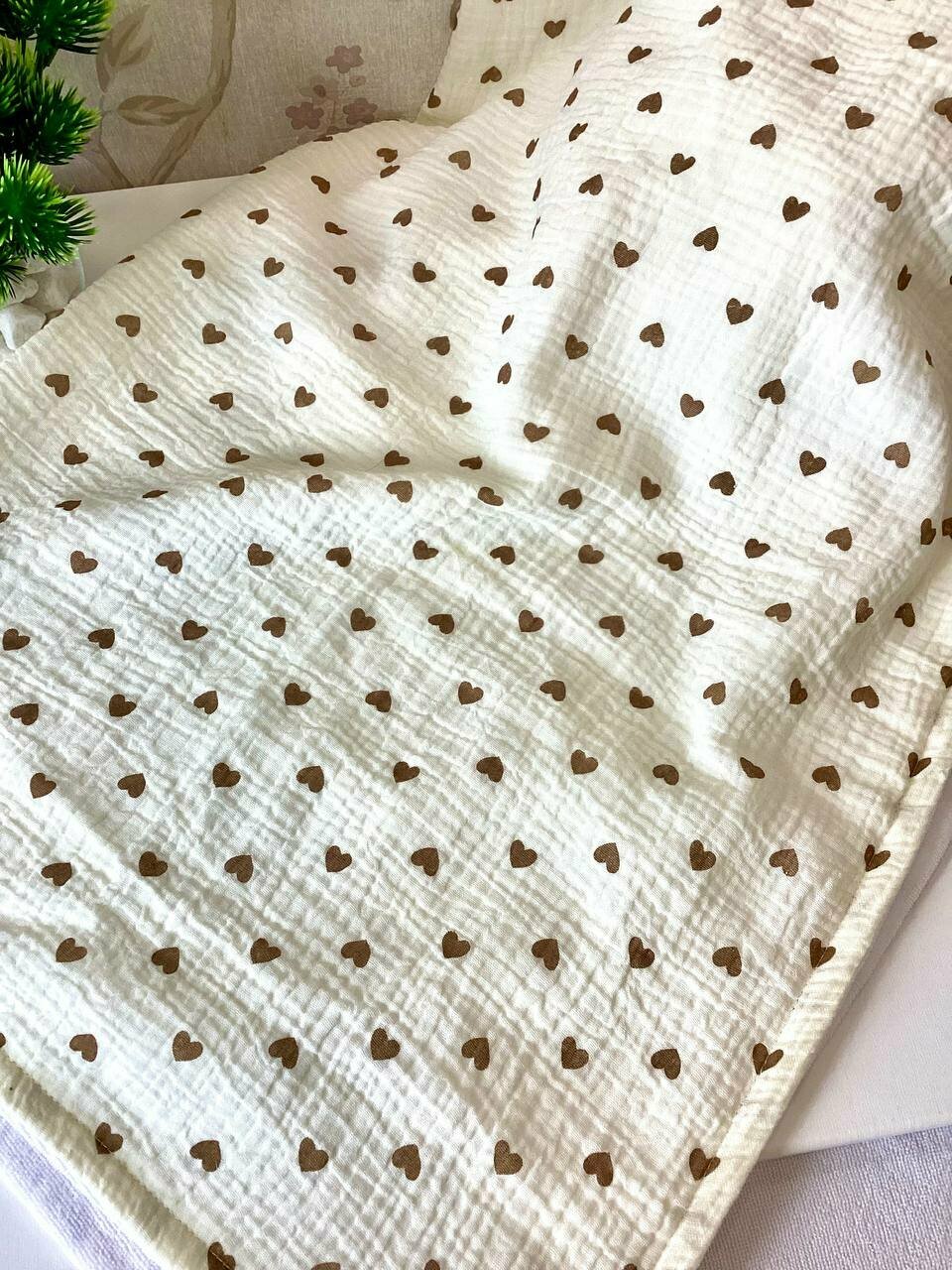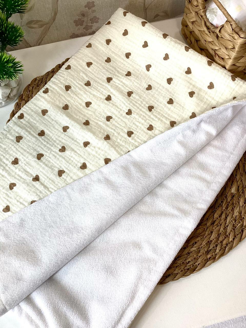 Муслиновая непромокаемая многоразовая пелёнка 60/90 см "Сердечки на бежевом" информация: